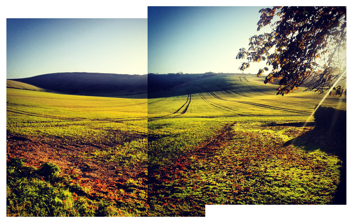 At Chapel Hill rays of golden light glance off gentle curves, the depths of the coombes cast dark blue-purple. Over the top of the hill and it’s that view again. In the shadow of Windover Hill I let me eye wander around the downland and weald for a moment. The whole of Sussex is merely a green strip between shadow and morning light. Down at the Long Man a middle-aged gent appears from the hedgerow clutching 3 rabbits. We exchange cheery hellos, but whether a farmer or a poacher I have no idea.