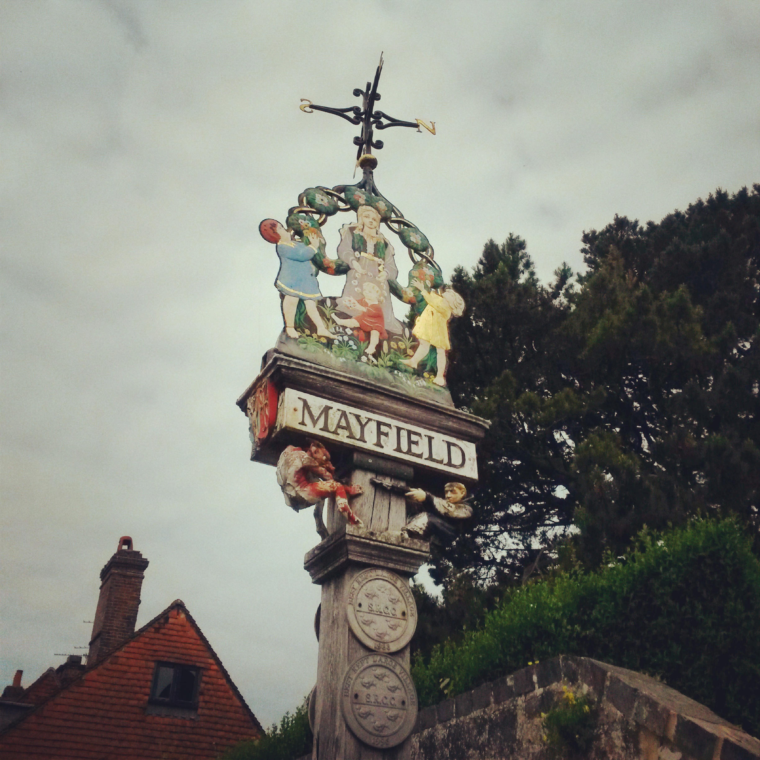I turn into a dark tunnel of trees, a narrow lane that cuts across to Mayfield. After a mile of so of dropping and twisting through woodland I sharply round a tight corner and I’m climbing again, between hedges and fields out of the woods. Popping out on to the main road I’m soon in the medieval village of Mayfield sitting atop the High Weald. From here I plummet into the weald on sunken lanes only to have to clamber back out again. Then I have to do it all over again only this time climbing higher. Then I’m freewheeling down again. I’ve ridden across the whole of East Sussex. The six martlets on village signs are replaced by a single white horse, the White Horse Rampant of Kent.