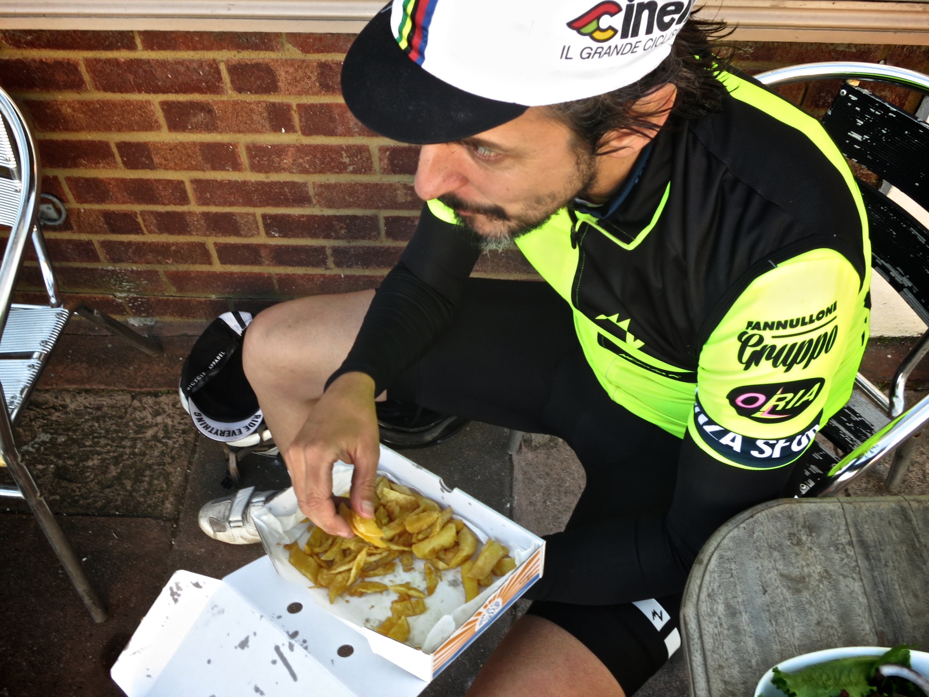 After demolishing a bacon sarnie George proceeds to eat Dan’s chips, “He did say help ourselves didn’t he?”