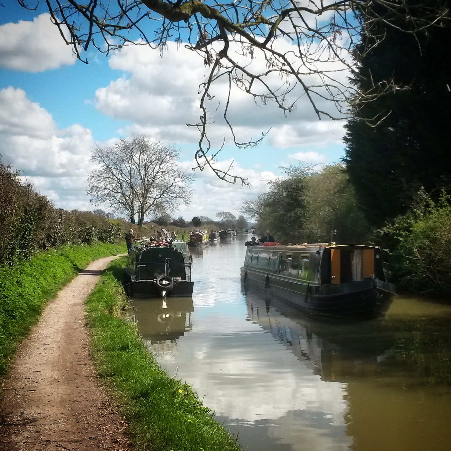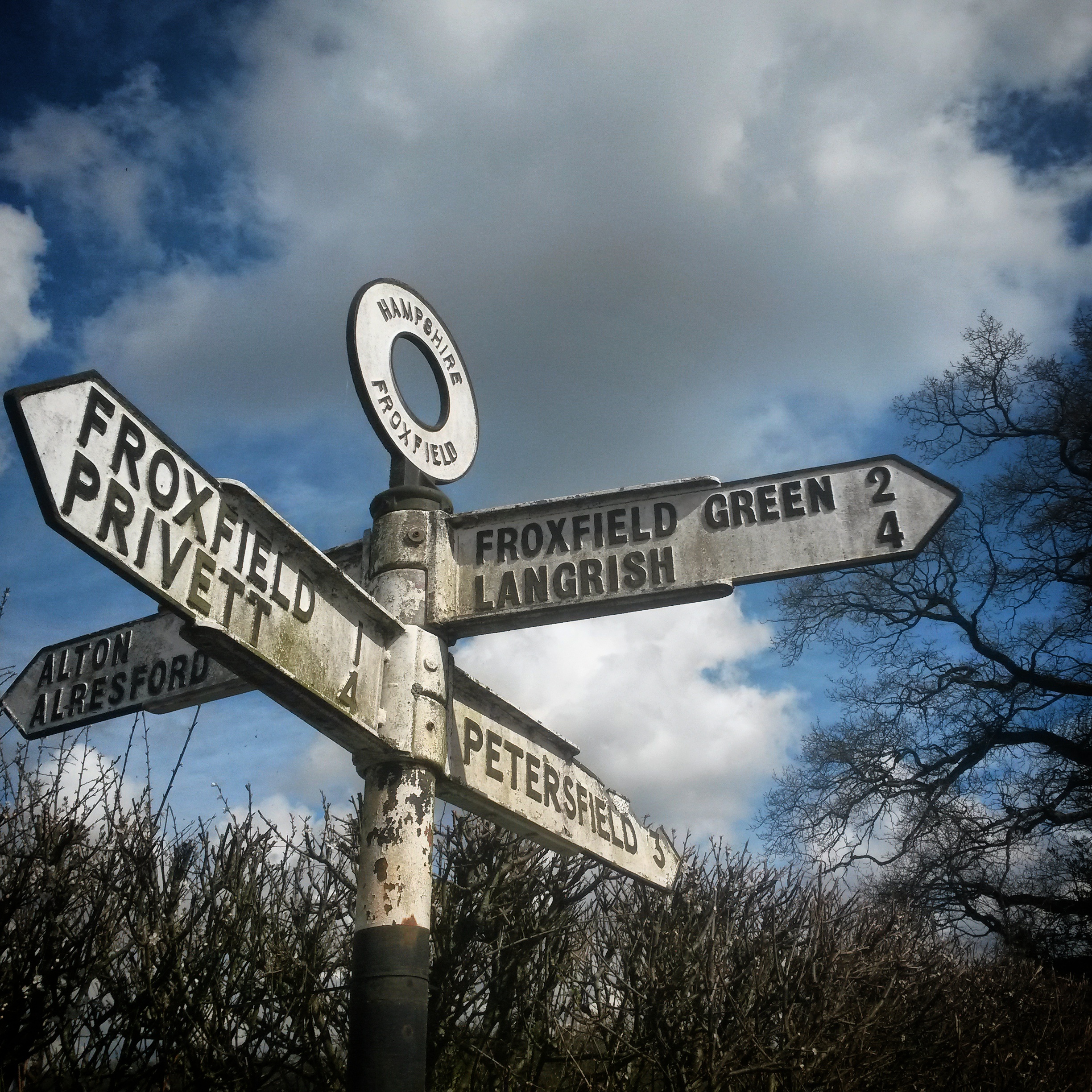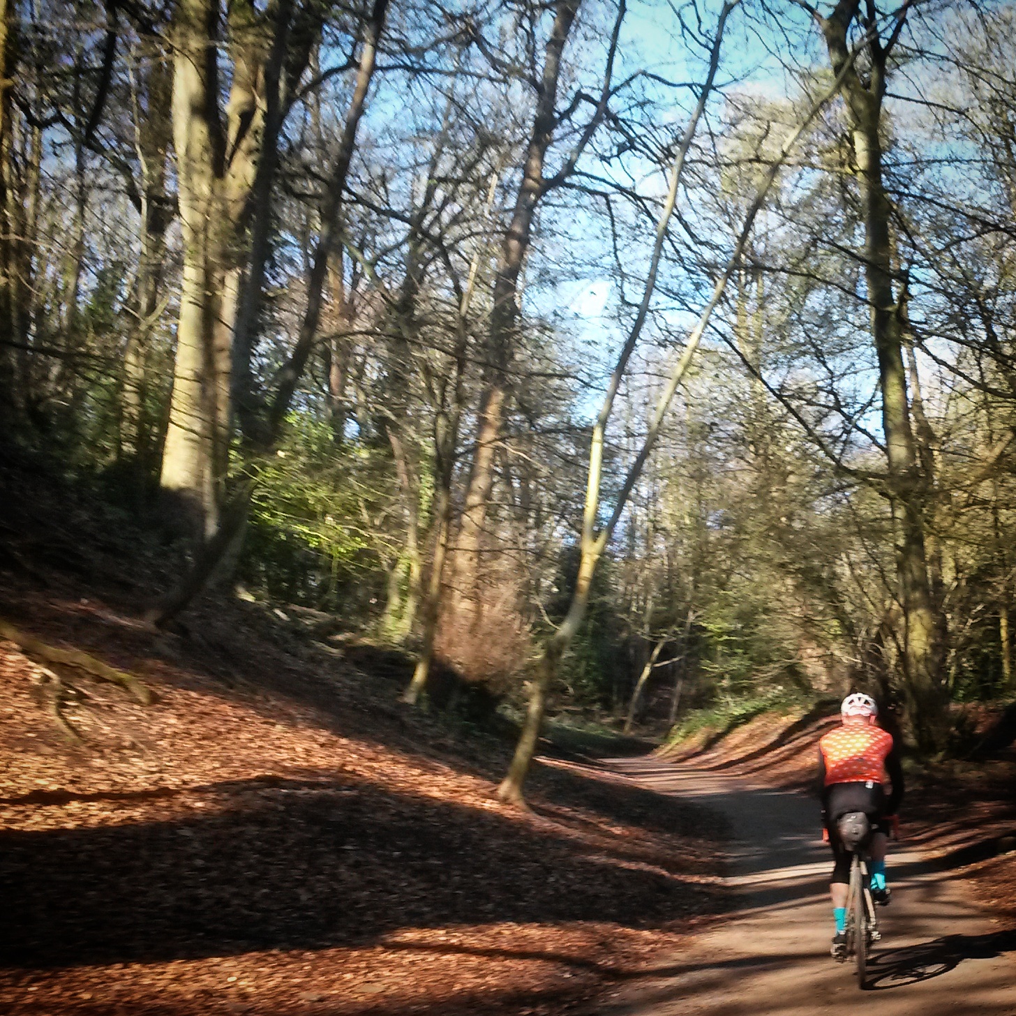 Riding the full 160 miles home was discussed and a route plotted all the way home, but with various bail points near train stations. On the day it was decided that aiming for between 80-100 miles would be most sensible, and then jump on a train. Immediately leaving the hotel car park I noticed the tell tale wibble of a broken spoke in the front wheel. Oh well, just as well I’ve got disc brakes. Snapped spoke wrapped around the one next to it we find found our way back to the railway path into Bath, for breakfast at a cafe recommended by Andrew from The Bicycle Academy. Two veggie breakfasts are ordered, but one with bacon added and one with sausage. From Bath we picked up the Kennet & Avon Canal all the way to Devizes. Again, Jo’s tyres came to the fore, but it being a sunny Sunday the towpath was quite busy, and our speed was fairly pedestrian at times. After lunch next to the canal in Devizes, we rejoined tarmac and headed south-east across the southern edge of the North Wessex Downs, the Alton Barnes White Horse visible on the slope of Milk Hill. We rolled gently across the landscape into Hampshire and down the Bourne Valley towards Overton, where we decided enough was enough for the day and hopped on a train home via London.