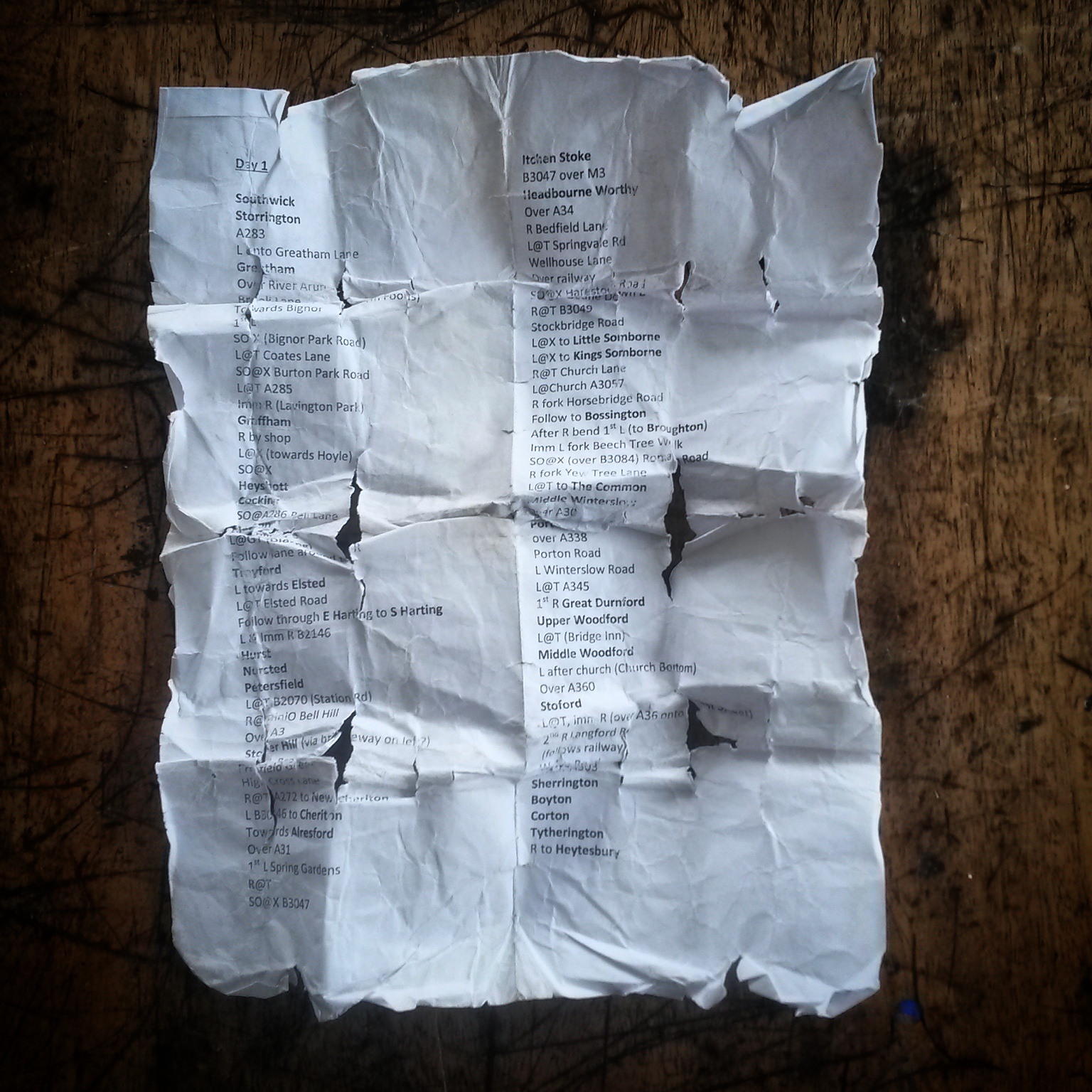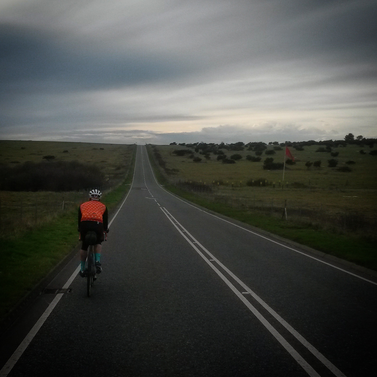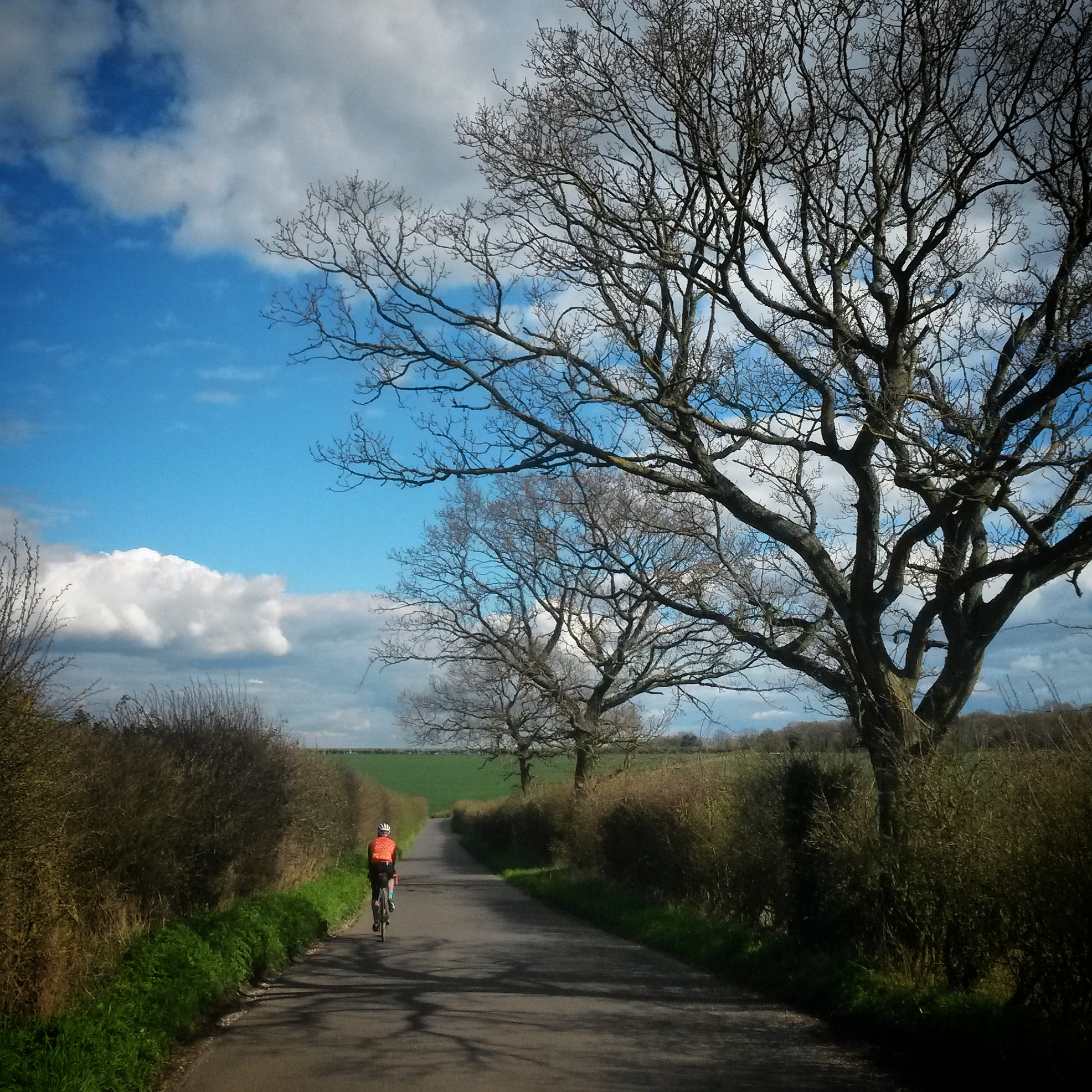Big ride day. Friends of Jo live “just the other side of Salisbury” which sounded feasible in a day, around 100 miles. Actually, they live near Warminster which is a bit further than “just” the other side. When the shortest line was plotted between Brighton and there the first day’s riding worked out at around 115 miles. The line drawn was roughly through Petworth, Petersfield, Winchester, and Salisbury but without actually going through any of those places. I think that Jo was secretly happy that the fixie frame was still at the sprayers as it meant he could ride the bike with gears. The route wasn’t too hilly, gently undulating across West Sussex, Hampshire, and Wiltshire. Navigation for the first half of the ride was relatively simple – keep the South Downs and the sun on our left. We missed a couple of turns so wiggled about more than we needed, but the sun was shining and we made decent progress. After a short alpine like climb out of Petersfield we dropped onto the A272 for a few timetrial-esque miles and stopped for a pub lunch. After lunch we managed to go the wrong way, or I managed to send us the wrong way, which I should have realised when we ended up in the middle of a town I knew we didn’t go through, but then shortly after noticed my shadow was on the left of me – “Hang on, we’re heading in the wrong direction”. Once back on route we managed to find some bridleways, after turning off a main road that was no fun. A quick glance at the gps app on my phone and it looked like there was a network of lanes that would get us to where we wanted to be.