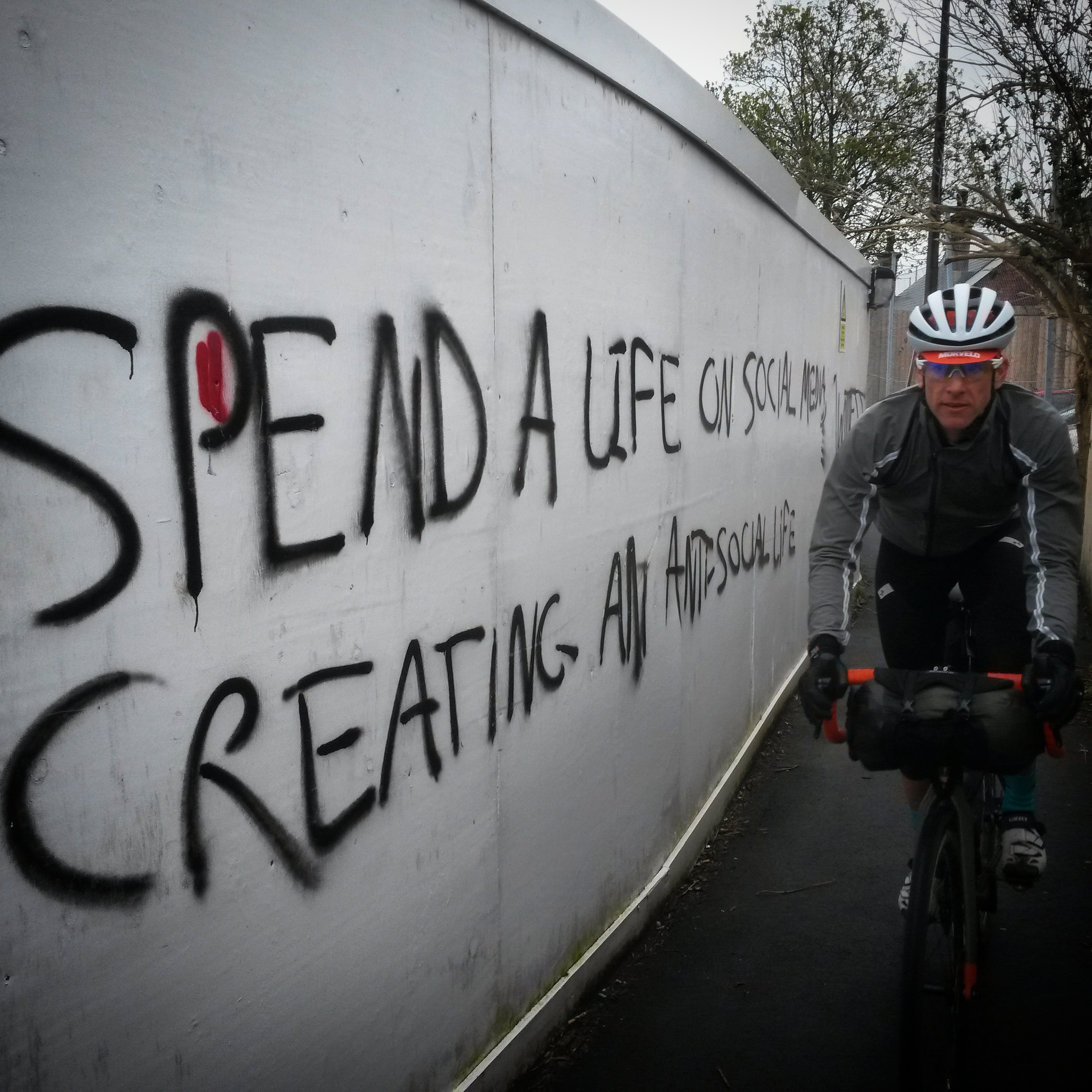 Before the off we nip down the A36 to a transport caff for a fry up. Marginal gains, obviously. It’s a shorter day today, just 45 miles, and a bit greyer and damper. From Warminster we get our heads down along the main road to Trowbridge where we pick up the Kennet and Avon Canal towpath into Bath. After a quick tea stop in the centre of Bath we go round in circles for a bit trying to find our way out to the Bristol & Bath Railway Path because the canal towpath is closed throughout the city. The cyclepath leads us slap bang into the middle of Bristol and we quickly find our way to Brunel’s Old Station for Bespoked.