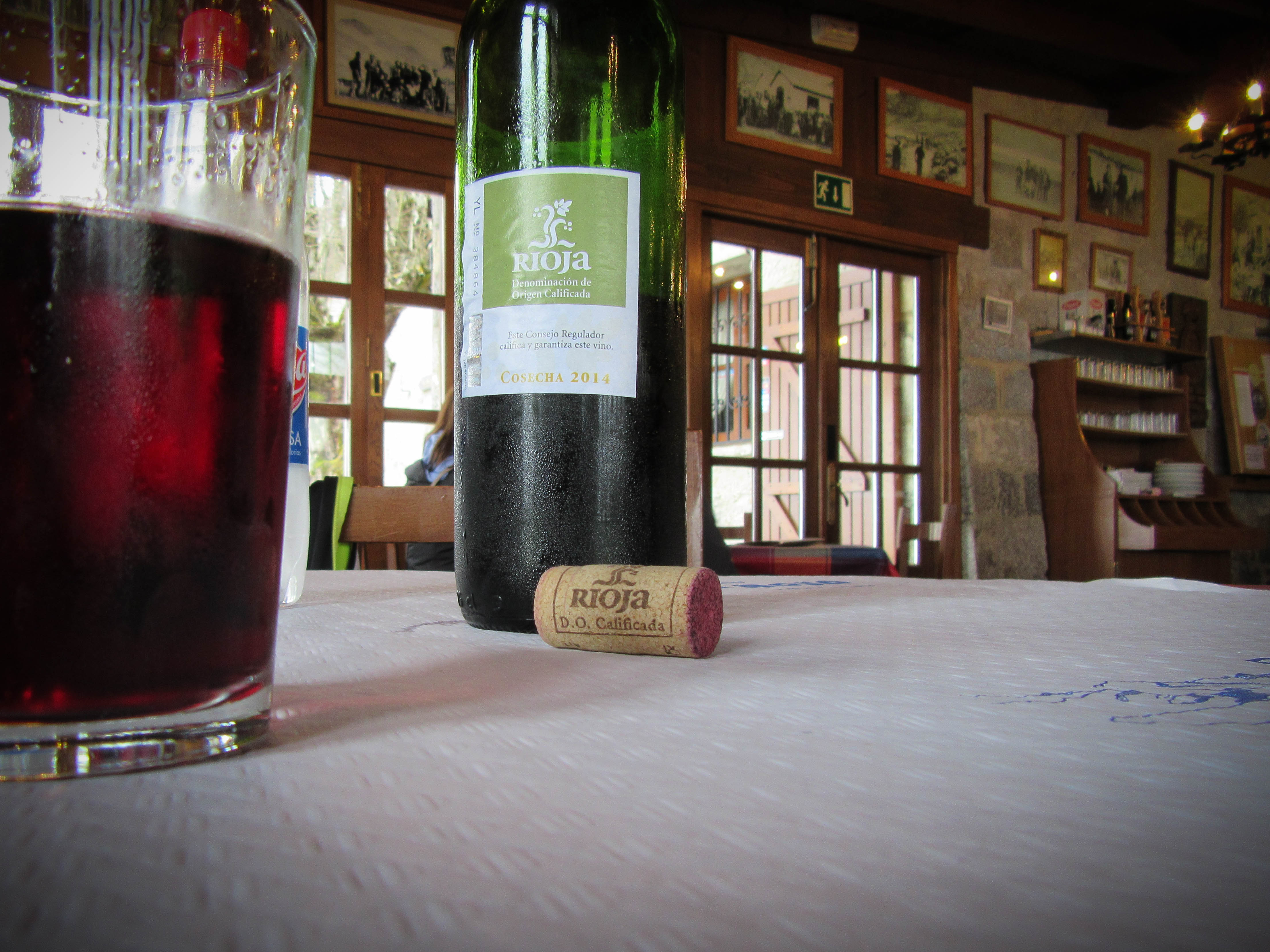 Having climbed the last five kilometres in cloud we are quite a bit cold and decide to have a coffee at the bar. We then notice it is pretty much lunchtime so opt for the ‘menu del dia’ and load up on carbs and protein (we’ve still got a full day’s riding once we get back down to the bottom), along with a bottle of Rioja mixed with fizzy water (a northern Spanish thing), because obviously half a bottle of red before a 12 kilometre descent makes perfect sense.