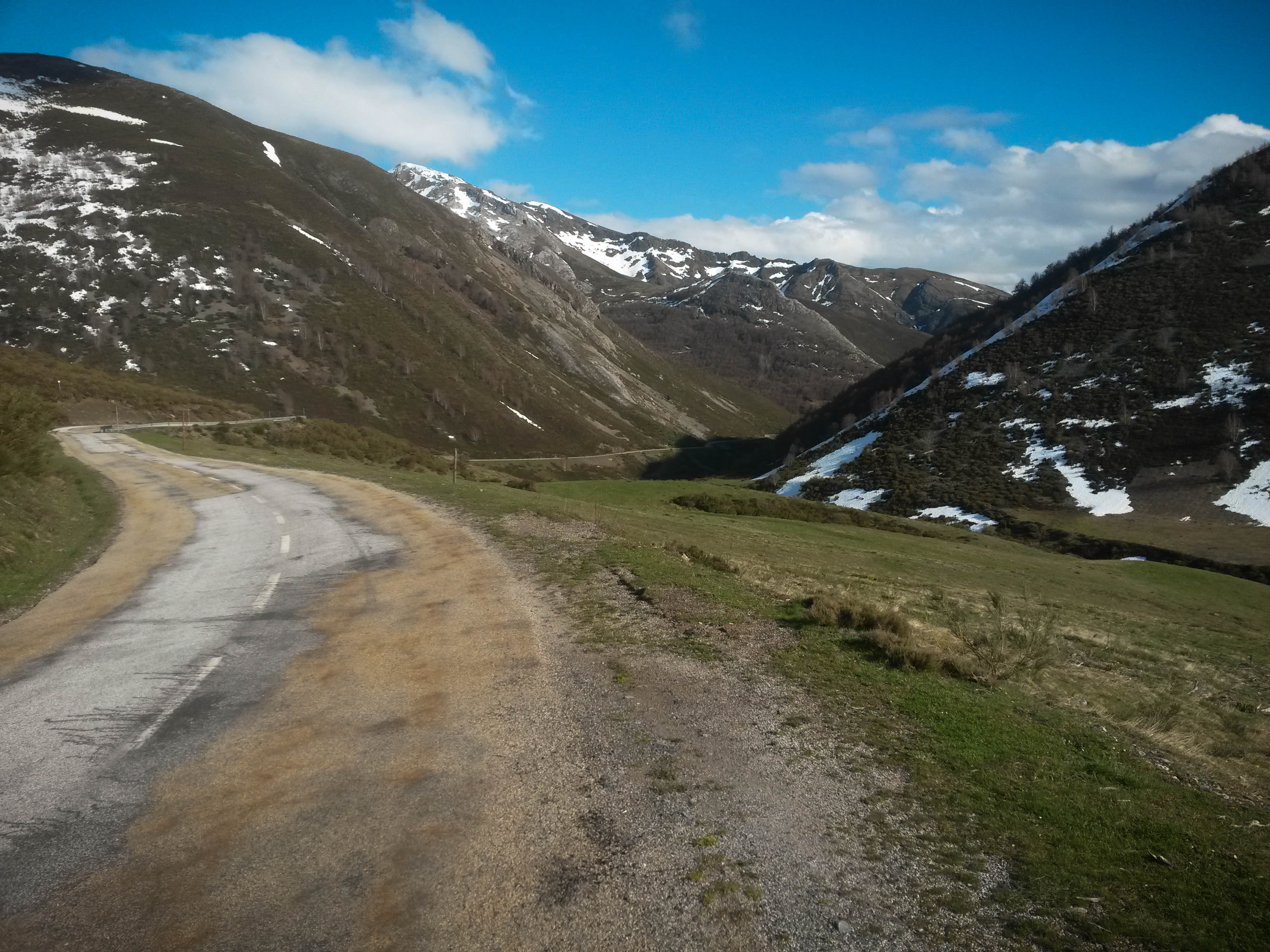 The descent down the other side is straight and fast through the open fields of a shallow valley, and 15 kilometres pass quickly, but yet again into a headwind. Then we turn into another headwind back on the road to Riaño – these headwinds are starting to get ridiculous! Again there is some muttering and swearing. However it doesn’t stop today from being one of the most beautiful rides we have ever experienced, in less than 100 kilomtres we seem to have passed through three seasons, and the terrain and environment has changed considerably every 10-15 kilometres. Each valley has differed from the last, the highest and lowest points of the day marking boundaries between landscapes.