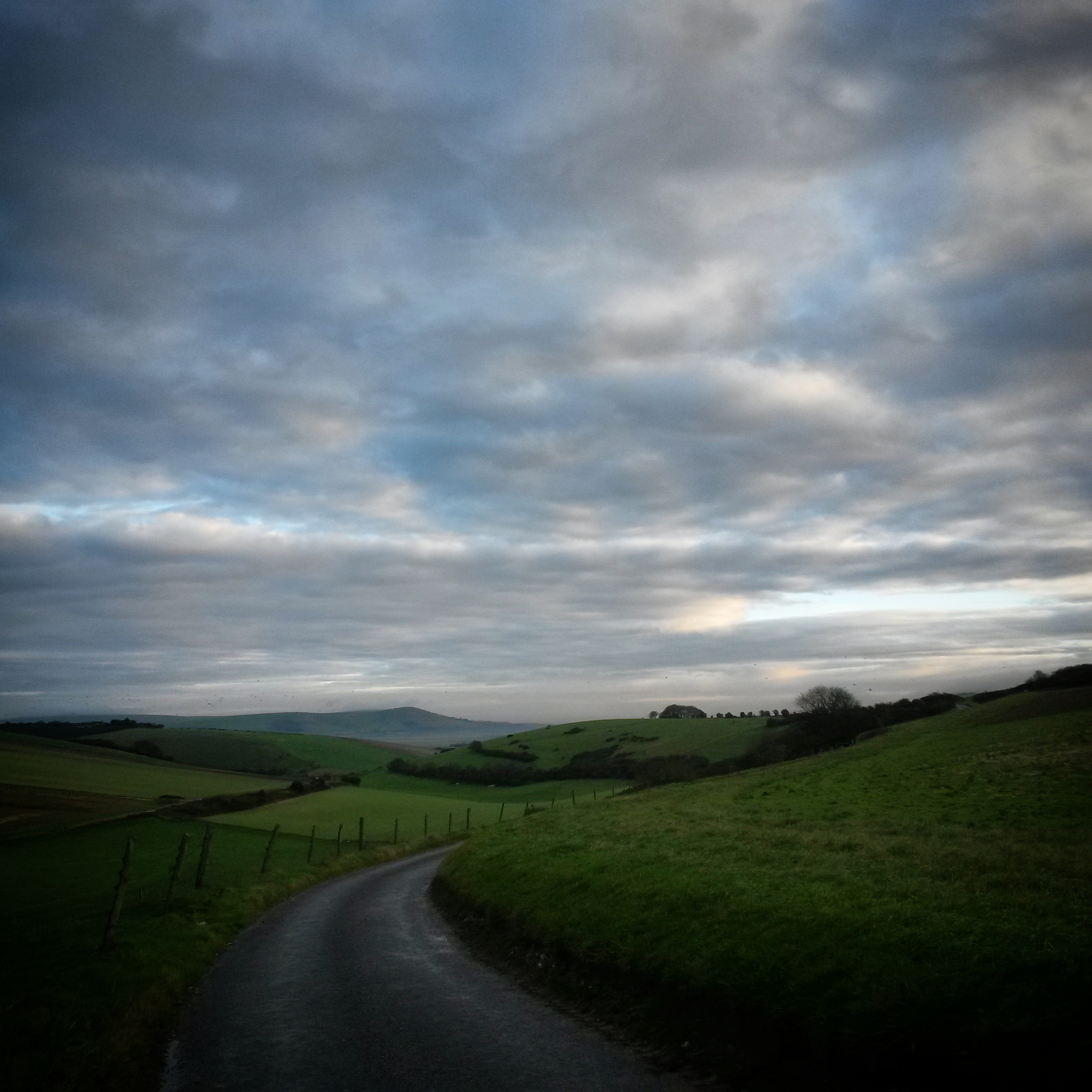 img_20161211_114146On a bike with fatter tyres I can do the same but there are other ways to keep me on the hillsides for longer. From the gate on the bend I can follow the double track along the fence higher onto the Tye. It’s not marked on the map as a bridleway or any kind of public right of way but the farmer is yet to tell me to stop. The gates at the top are locked so I have to lift my bike over and climb after it. To the south there’s a bridleway that leads round into Saltdean and the undercliff path, but if I’ve got time to waste I’ll climb over the other gate and disappear into Hidden Valley (not the name given on the map). It’s a good place to sit and think, I’ve rarely seen anyone up here. From the top of the gate I can watch the downs slowly falling away in soft steps towards the Ouse, Mount Caburn and Beddingham Hill standing proud beyond, like a gateposts to the flatlands around Ripe. I’ve ridden over here on an autumn morning when mist settled in the waterlogged valley, the chalk hills rising like islands from a white fluffy sea. Whenever the sun is low, glancing off the hillsides, shadows accentuating the ripples of the downsland, there’s few places I’d rather be.