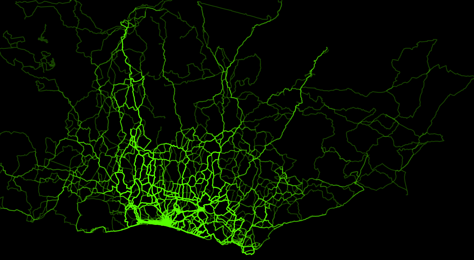 Where indoors I trace a line across a piece of paper and through my imagination outside I’ll cut through air dense with remembrance and fuzzy recollection. One day it will be a headwind to fight , another a friendly tailwind. The repetition of action, legs spinning, and motion empties my mind, lets it drift elsewhere, thoughts and memories sneak up on me. Some memories weigh heavy, others flash around my head light as snowflakes. Fleeting glimpses, things caught out of the corner of my mind trigger thoughts, the here and now combined with there and then. Then I’ll snap out of reverie, become lost in the moment, the feeling of air on my face, taking a good line around a corner, speeding down a hill, the metronome of my breathing, the ache of effort in my legs. I concentrate on the here and now until other thoughts bounce around my head and collide. Previous instants blend with the moment, my mind inextricably links the present, past and future – rides remembered and thoughts of rides yet to happen. Time and space bend and scrunch like the folds of the map, places far apart instantaneously touch, ever so briefly, just for a moment, connections between places and times appear and disappear.