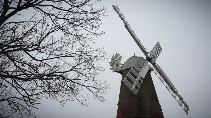 Climbing to Jack and Jill we could see Oldland Mill stood across the fields, it’s whiteness concentrated by sunlight against the haze. We realise we must have seen it across the way hundreds of times without really noticing or knowing what or where it was. Now we know. And where that lane behind the Ditchling war memorial leads. Back over Devil’s Dyke and we could see the sea for the first time despite having ridden next to it for an hour earlier in the day. We hurtled down the hill for the final mill at West Blatchington, then turned for the pub.