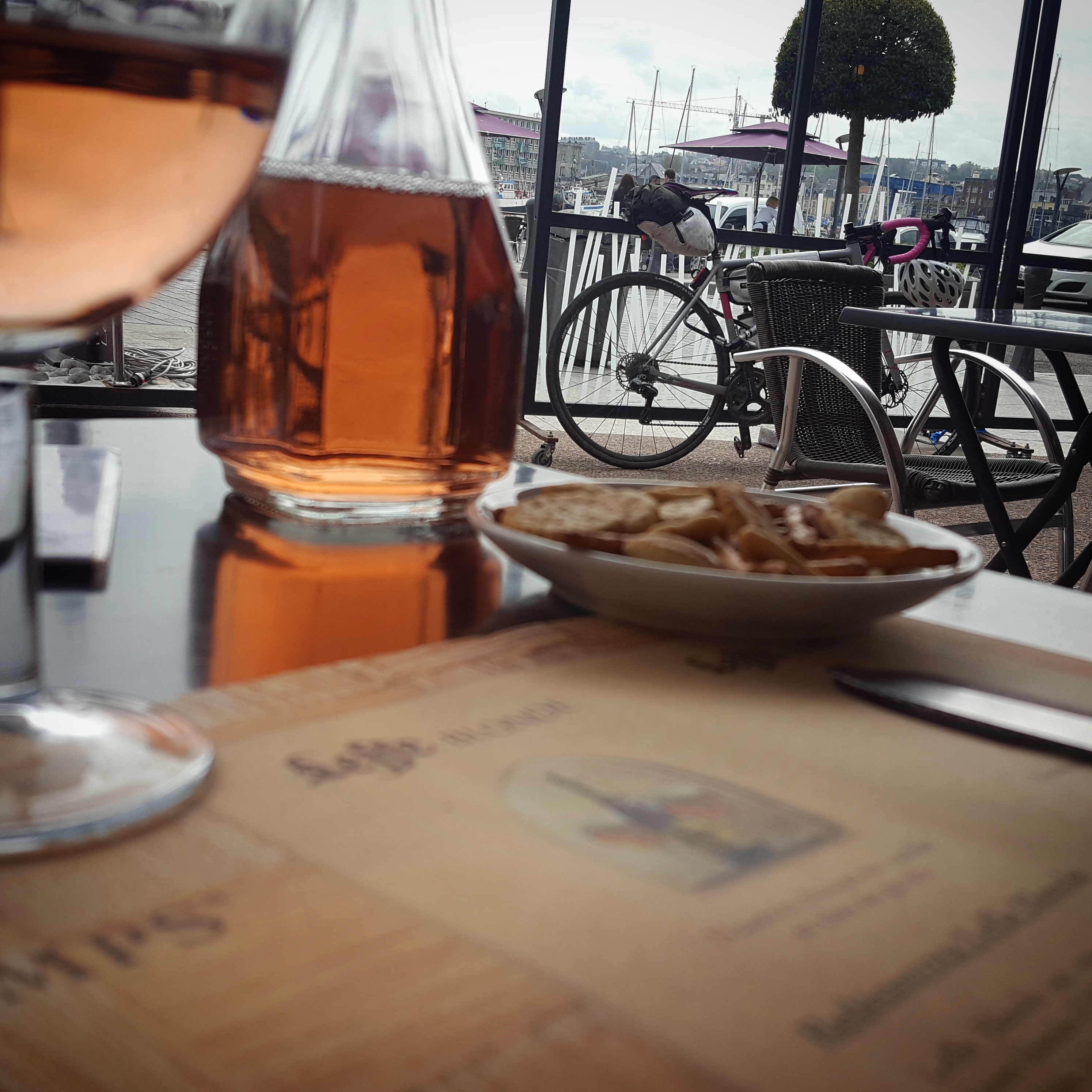 Heading south to pay a visit to the north country. Drifting off the ferry in a sleep-deprived daze and heading up the hill on autopilot. Riding in a puddle of light and easy familiarity in the silent blackness, red lights blinking atop the wind turbines I can’t see, beacons out across the coastal plateau. Knowing when to change down and when that corner tightens more than expected. Almost riding into a ditch whilst distracted by the sound of turbine blades cutting the dark air above. Birdsong and the smell of rape colours in the black. Light eases into the sky as the lanes become unfamiliar on the way to somewhere familiar. A bakery open early, one pastry eaten on the corner, the other tucked in a pocket for later.
