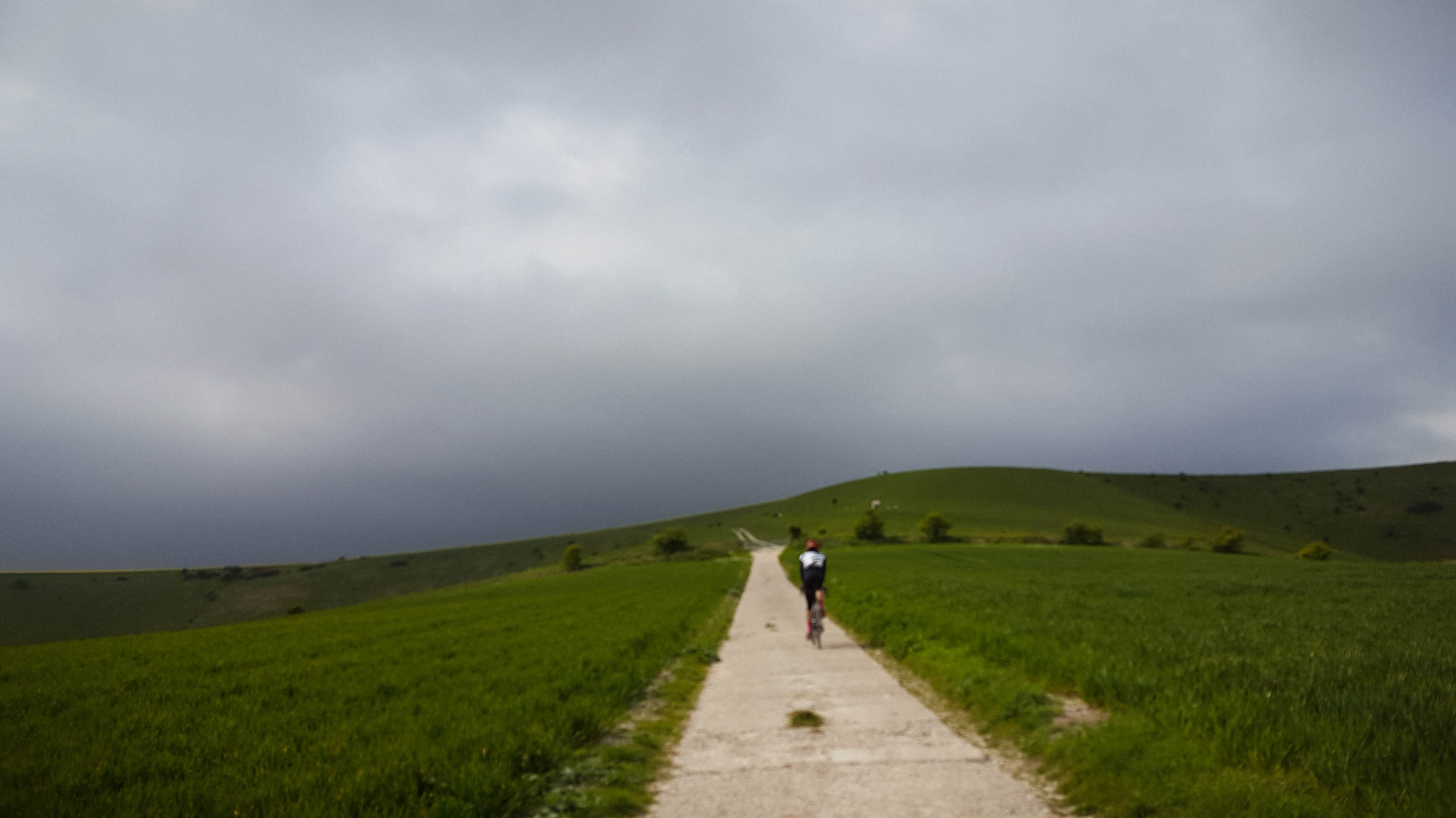Yeah, and the A27 is down in there somewhere. Don’t try and ride this in winter though, it’s an absolute bogfest. That beacon you can see up ahead, that’s Mount Harry.