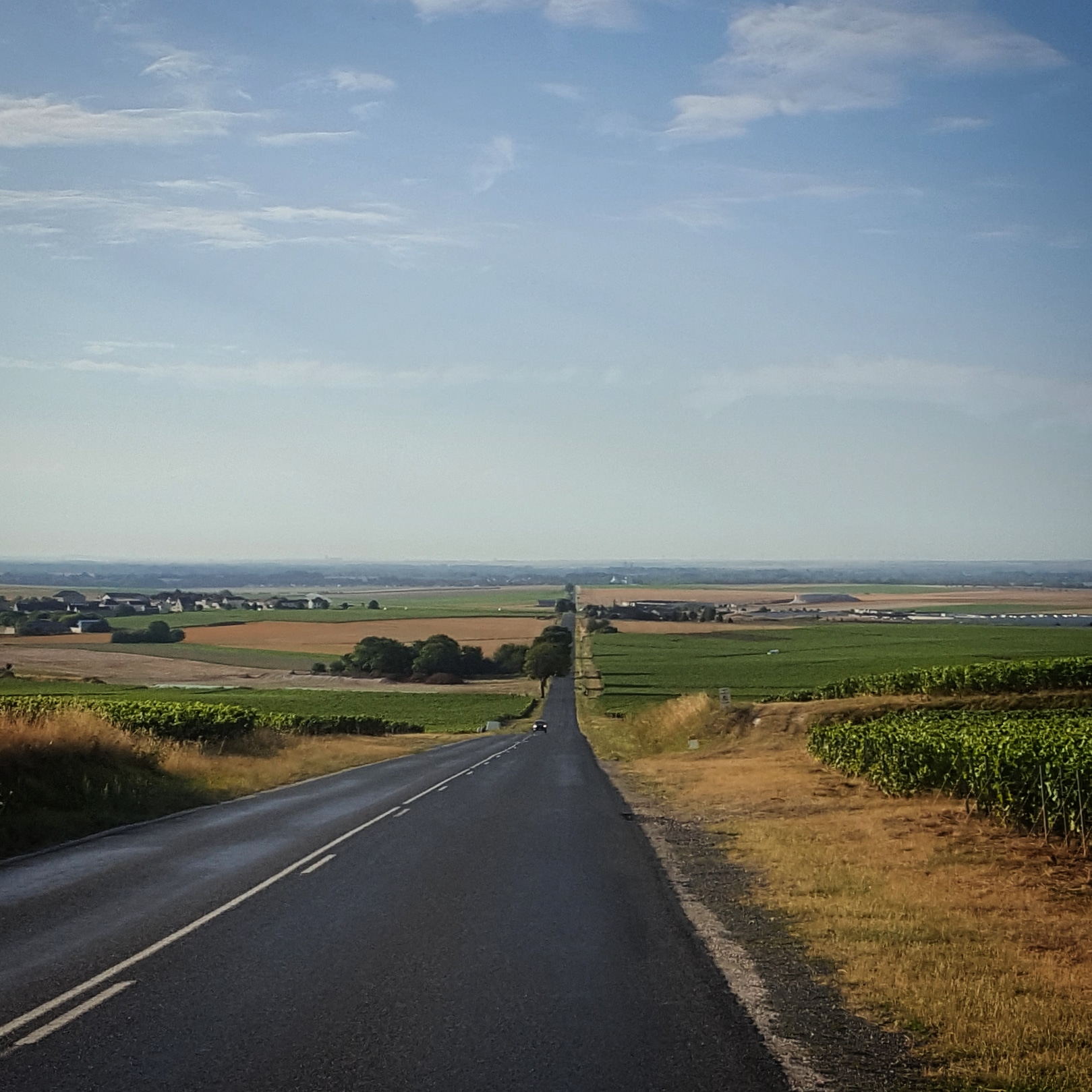 Up and out early, climbing through champagne country. Long straight undulating roads like only the French can do.