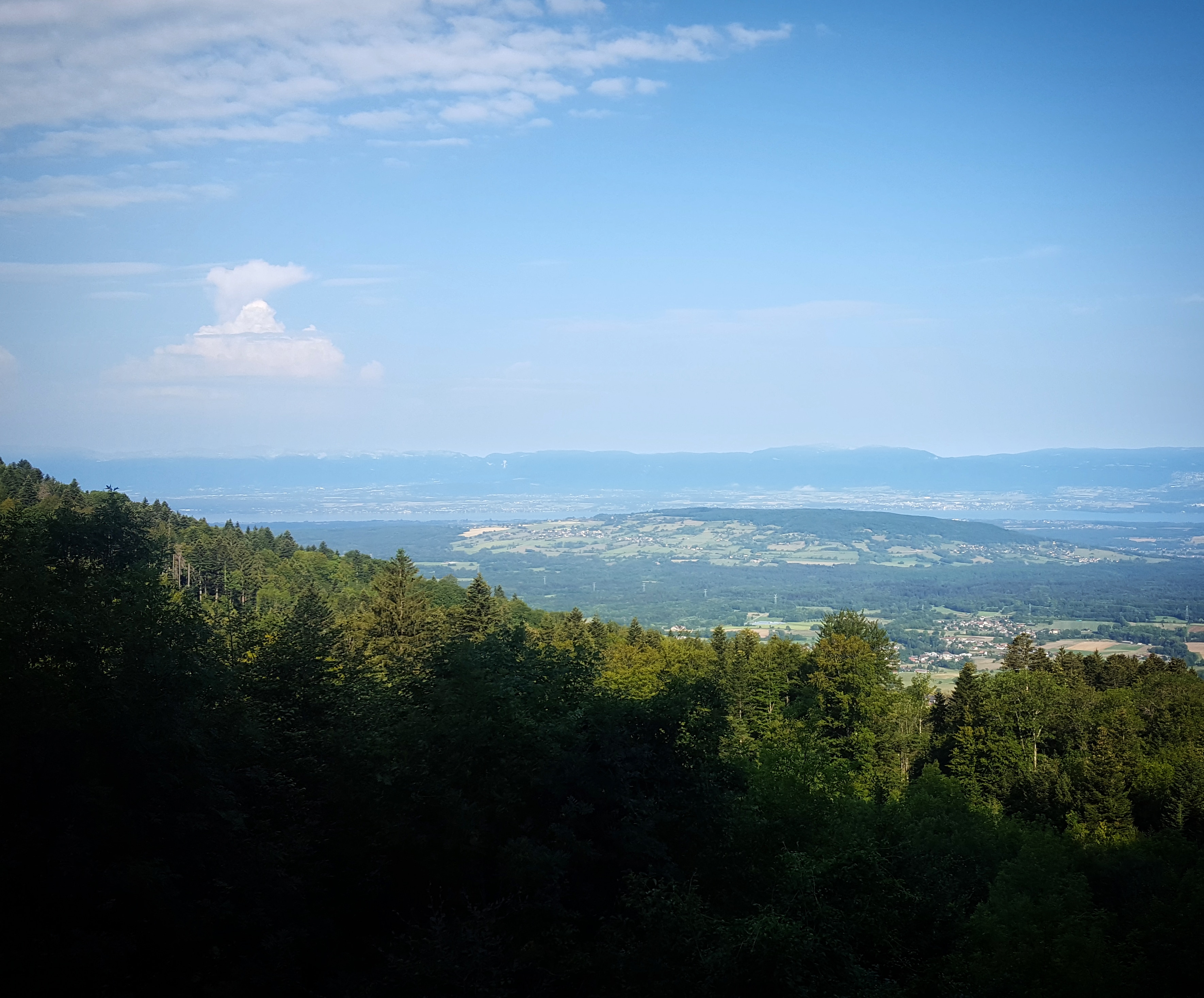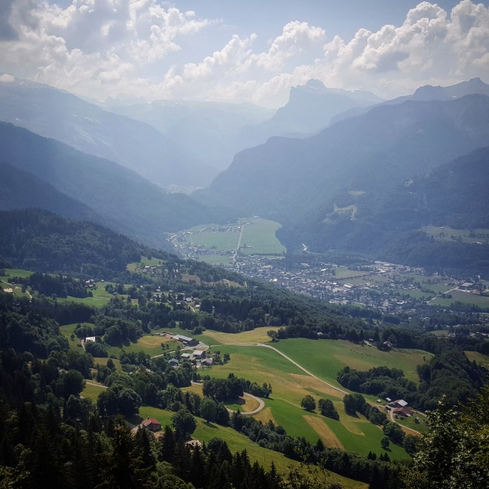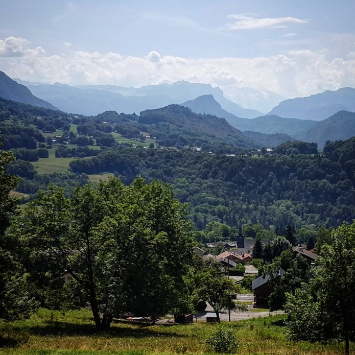 Descend the valley as far as the gorge and turn into the mountains that border Lake Geneva – les Alpes du Léman. Similar in height and feel to the Jura the other side of the lake. Short gentle climbs through forest to plateaus and meadows. Coffee and pastry in Habere-Poche and chat to some English riders settled here. One more climb then lunch in Megevette. Slow grind home in the afternoon heat from Taninges to Les Gets, bloody hell that back road is steeper than I remember. Emergency ice tea needed at the petrol station before the descent to Morzine. More storms in the evening.