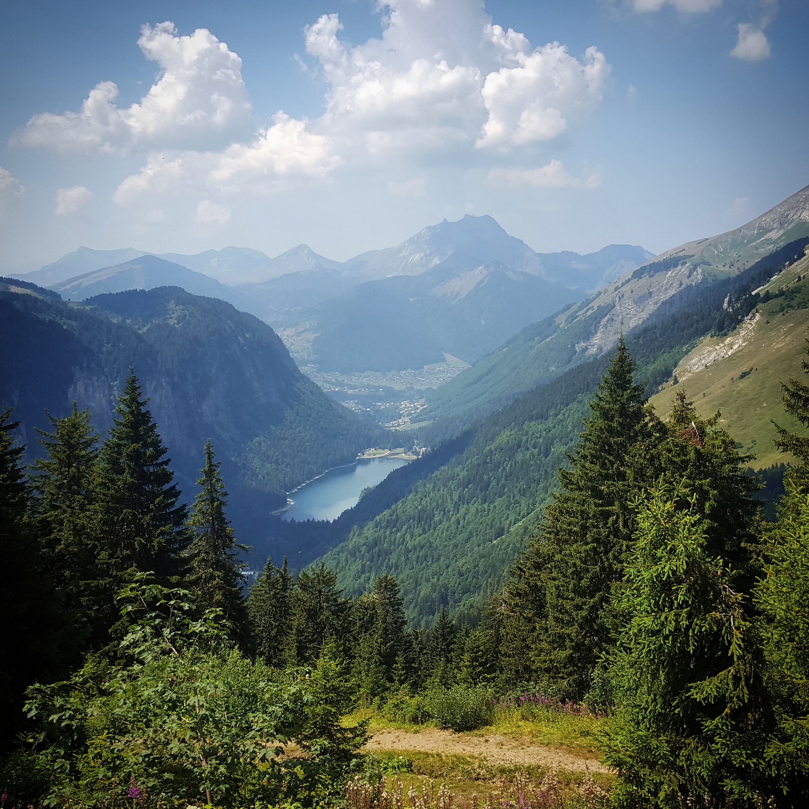Up a dead end valley, on a road bike at least, to the base of Col de Bassachaux, a huge car park full of 4x4s, VW vans and armour clad downhillers. I feel a little out of place. I start the climb through tight switchbacks catching snippets of MTB’ers’ conversations as they pass overhead on the chairlift. Just below in the trees I can hear the BRRRPPP of gnarly tyres on the trails. From one corner I glance back at the cars and queues below to see someone do a backflip off a huge ramp. Three corners later the road surface worsens and steepens, I’m starting to see the benefit of this uplift malarky. At the top I can see Montriond below but am on the wrong bike to descend to Les Lindarets to pick up the road home.