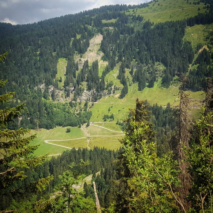 Lunchtime ride over the Joux Verte before the storm rolls in. From the top section I can see the zigzag of the path down from Col de Bassachaux.