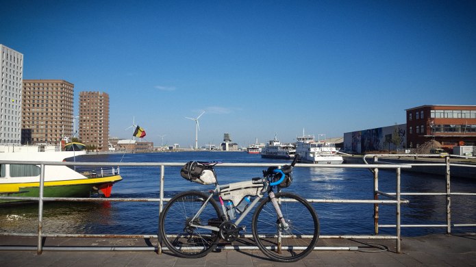 The 35 kilometres after Antwerp follow a river and two canals. Flat apart from little ramps at the locks at regular intervals, climbing in tiny increments. Somewhere in a busy town market weaving in and out of pedestrians I crossed a dotted line painted across the cycle lane with NL painted on the far side. Things seem to get even straighter and flatter, though I am sure this is not actually possible. Houses get fancier, more modernist looking, and towns are built on grids and order. Everything just seems a little neater and tidier. It’s all very De Stijl. Cyclists and pedestrians get priority everywhere, it’s like a dream. Here the car is not king. Every path side cafe and bar is bustling, bikes racked up outsides, kids playing, adults drinking and eating. And there seems to be a cafe or bar on every corner. I make a mental note to come back and explore the Netherlands far more slowly.