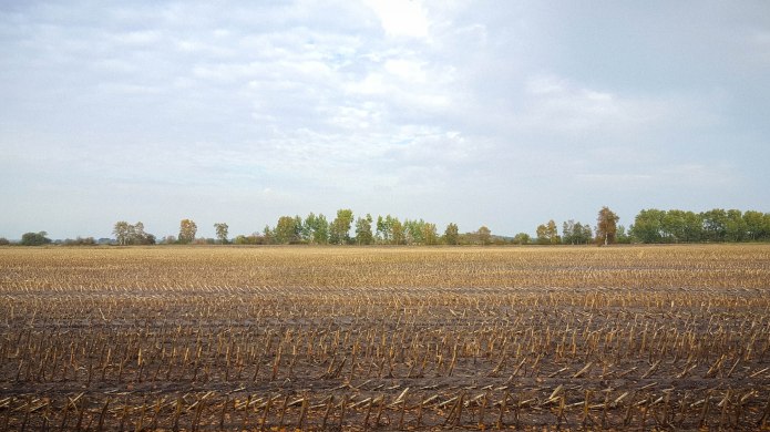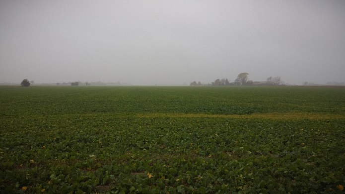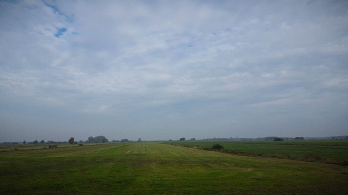 Drying my shorts with a hairdryer after again I’ve made the most of the breakfast buffet. Big fields, vast horizon. The faint odour of horse shit. The stronger stink of a turkey farm. The longest straightest roads I’ve seen since South Dakota. 10km straight, slight kink, 4km straight.