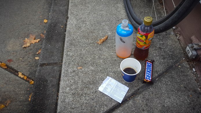 Sitting on a curb staring at petrol pumps, an espresso and a Snickers to hand. Plus an Ice Tea, obviously.