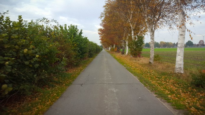 The ‘short’ day, roughly 180km planned from Netherlands into Germany. Graham Greene’s Our Man In Havana (I forgot how very good the book is) and David Bowie in my left ear for company. I was expecting cooler temperatures today so am wearing 3/4 lengths and a long sleeve jersey. This turns out to be a mistake, by midday a town centre digital display indicates 29 degrees. It’s October f.f.s., tea and cake season, not more Ice Tea and Magnums.