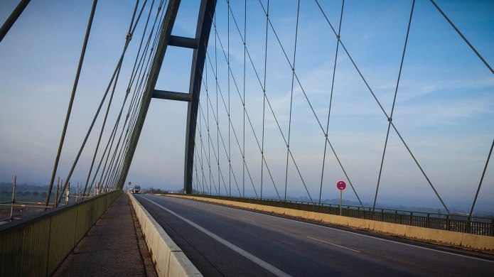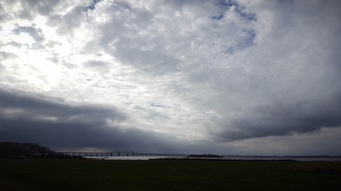 The afternoon isn’t quite going to plan. I am hoping to get to ferry by 5(ish) but I discover I’ve made a couple of routing errors. The first one is when I find myself on a motorway slip road. Fortunately I have a second route plotted so I find my way onto my alternative route which happens to be just the other side of the same town. This one gets me closer to the bridge across Fehmarn Sound but also tries to send me down the motorway via the back entrance of a petrol station. Out with the phone and Google Maps again. Finding the entrance to the cyclepath across the bridge Kraftwerk’s Europe Endless starts in my earphone.