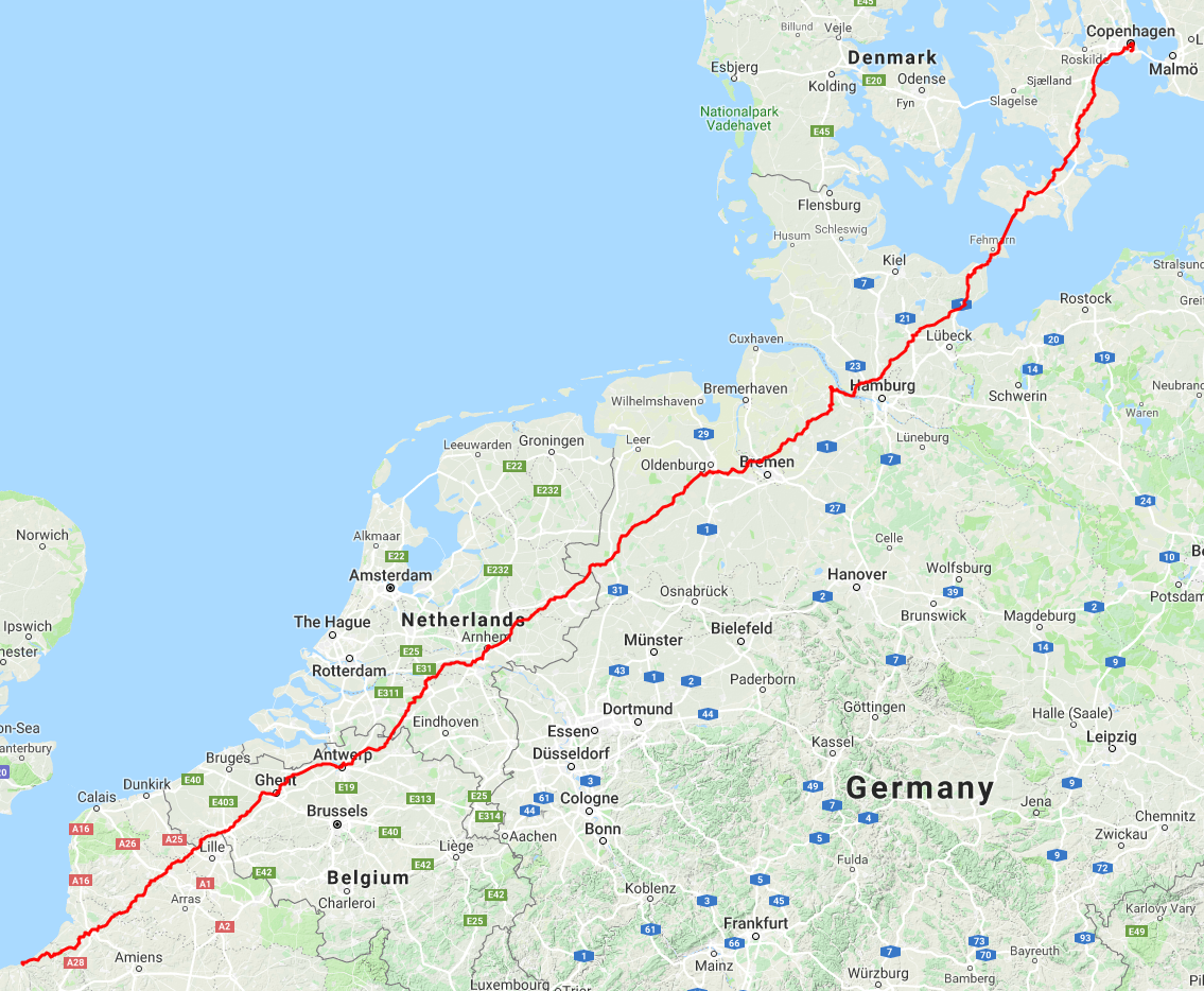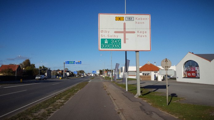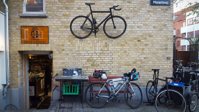 My route is beautiful but devoid of shops so the next 70km is done on one bottle of water. I knew I should have bought a spare bun for the musette at lunchtime. No peanut M&Ms left in the framebag, no snaffled goods from the breakfast buffet. One day I’ll learn to carry spare food at all times. I’m tired and hungry. As nice a place for a puncture as anywhere I suppose. A bonk or sense of humour loss is imminent. Saved by a kœmpe snegl (pastry, custard, cinnamon, icing – it’s so good I’m tempted to go back for a second) on the outskirts of Køge. There are fifty kilometres left on my planned route I reckon. A couple of hours. A sign for Copenhagen, 38km. The “fuck it, let’s just get this done” switch is flicked in my head. Garmin off, turn right. It’s not pretty but it’s functional and fast. I’ve done 1250km of pretty, i can cope with mediocre for an hour or so. My average speed jumps about 3kph.
