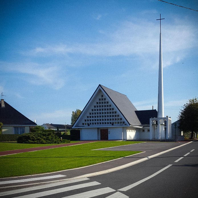 Darkness fades into the twilight of dawn which in turn fades into day. There’s the sudden recognition of a bend in the road and a short rise through some trees. I am close to the River Somme. The sun is low in the sky as I turn onto the flat path along the river. The rise and fall starts again as soon as I turn away from the river. I’ve not ventured further east of the Somme before so the rest of the day will be new to me until I reach the suburbs of Ghent.