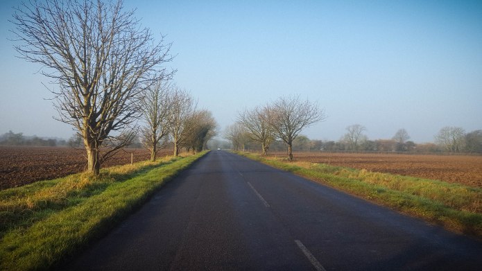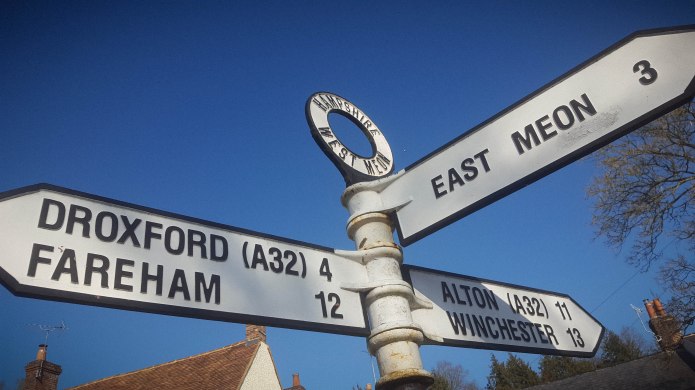 My previous experience of Chichester is all dual carriageways, ring roads, and roundabouts. It’s an awful place to get across or around on a bike so getting through here before the shoppers wake up is another good reason for having set off pre-dawn. Out past Chichester I’m on the road up and over Harting Down. I’m into the pretty stuff now. The boring functional bit out of the way the bike ride proper has started…and the weather is flaming glorious. Briefly. Over Harting Down I sink into fog trapped between the hills. I find I’m suitably dressed again. The cold damp mist lingers for a good few miles before thinning and disappearing somewhere in the Meon Valley. The warmth returns. I realise all the times I’ve ridden west I’ve not passed through the valley before, usually I’m up on one of the ridges either side. I must remember this flat option between Petersfield and Winchester. It doesn’t last forever, and I soon find myself climbing over Wheely Down on familiar roads.