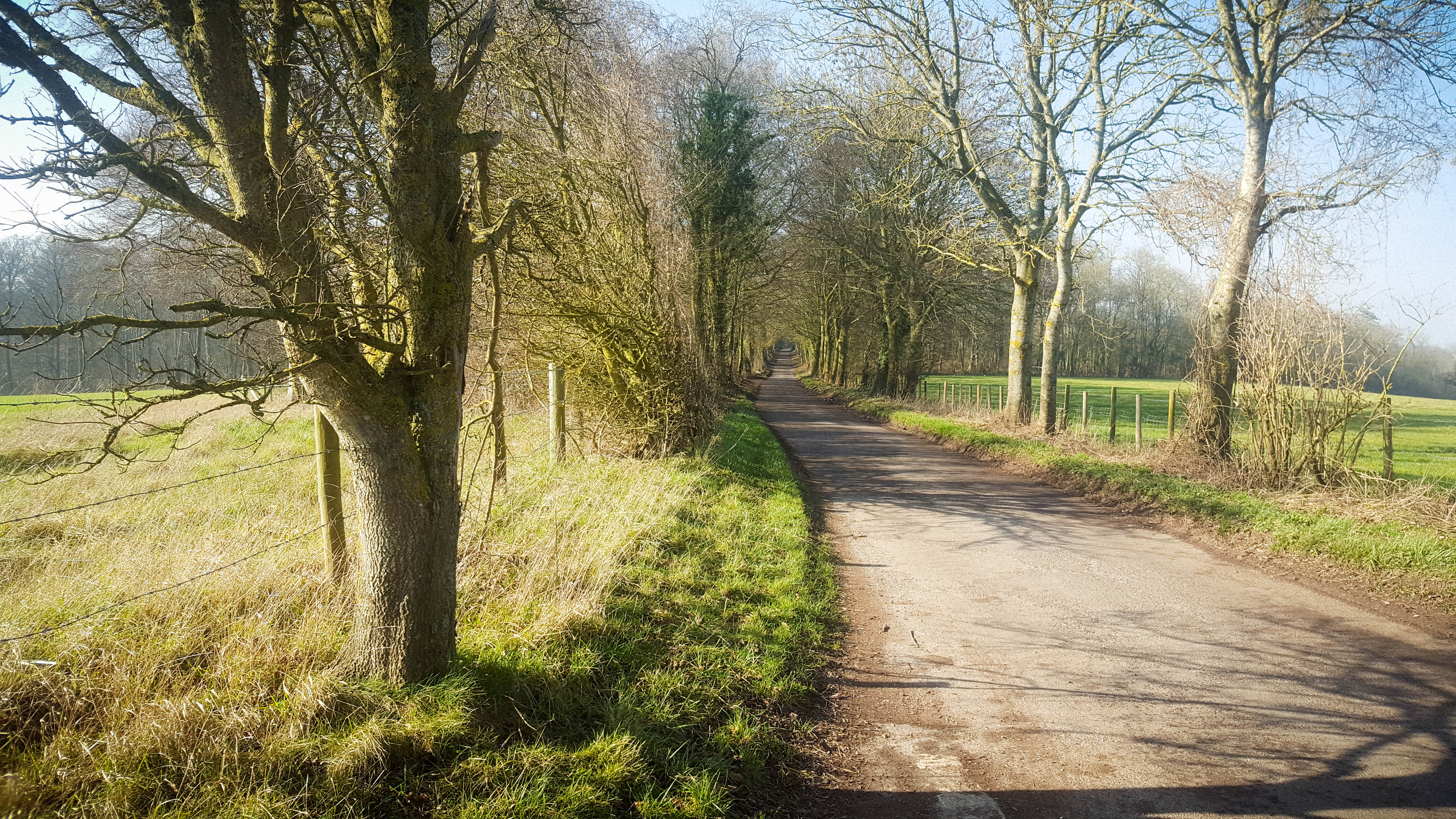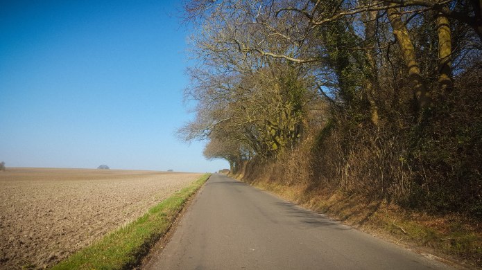 The raked winter light is beautiful, sunshine falling slanted, shadows stretching long across the land even at midday. There’s a diluted look to everything as if painted in watercolour. The saturation of spring is still a way off, a reminder that’s it’s still not quite spring despite the rolled up sleeves and unzipped jersey.