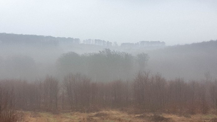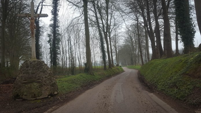 Almost-silence hangs in the mist. The only sounds are bird song and the gentle whirring of block and chain. The valley sides are obscured by layers of tracing paper haze. Silhouettes of trees and church spires look one and the same. Follow La Béthune for an hour before turning onto the clay hills. Rollercoaster bends through the Forêt d’Eawy and down to Vallée de la Varenne, the river that divides Pays de Caux and Pays de Bray. Sit and eat a pastry on a bench in front of the church in Saint-Saëns. I follow the Varenne back towards the sea for a few kilometres then climb west onto the limestone plateau. The rest of the day will be spent meandering on roads new to me up here.