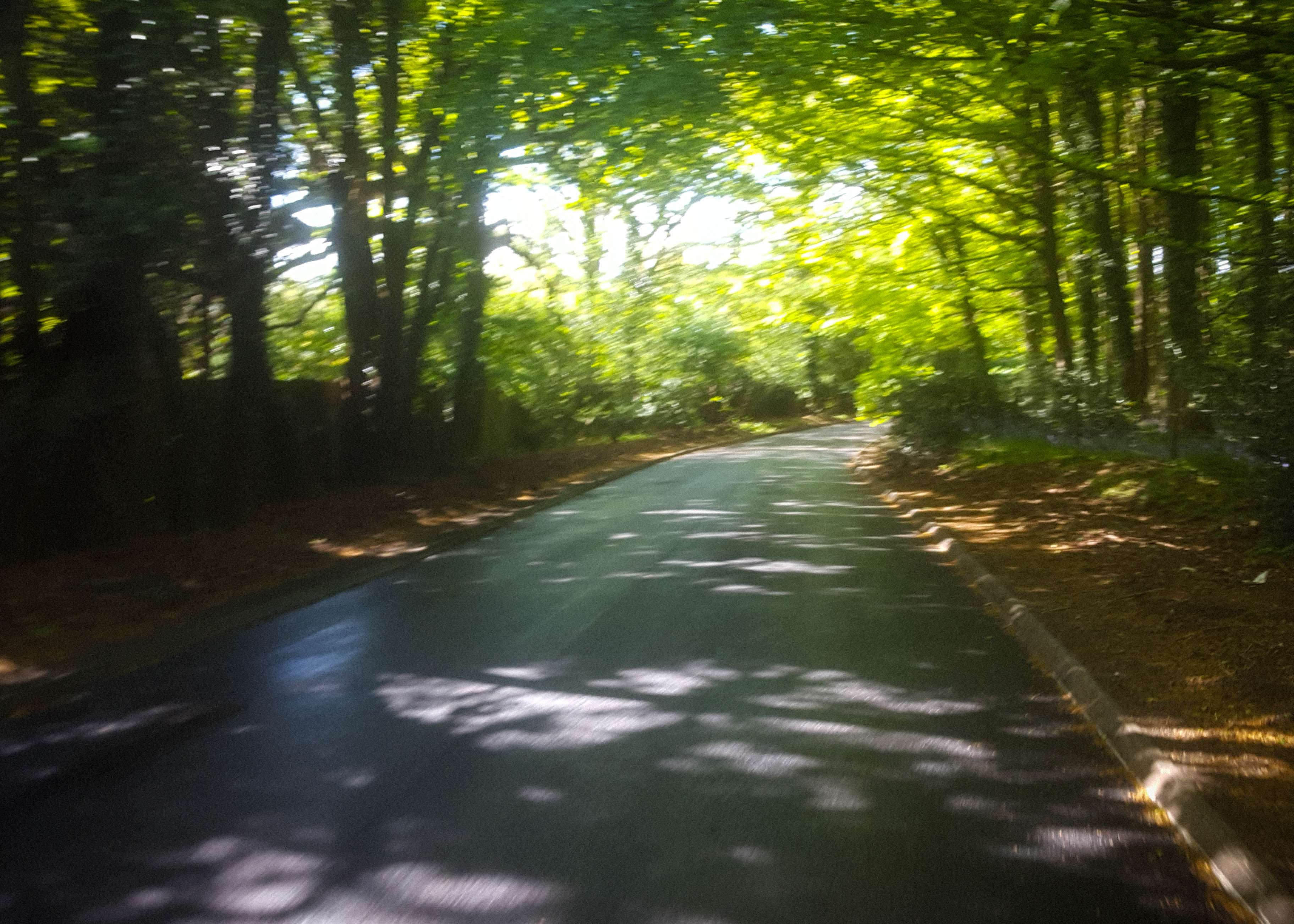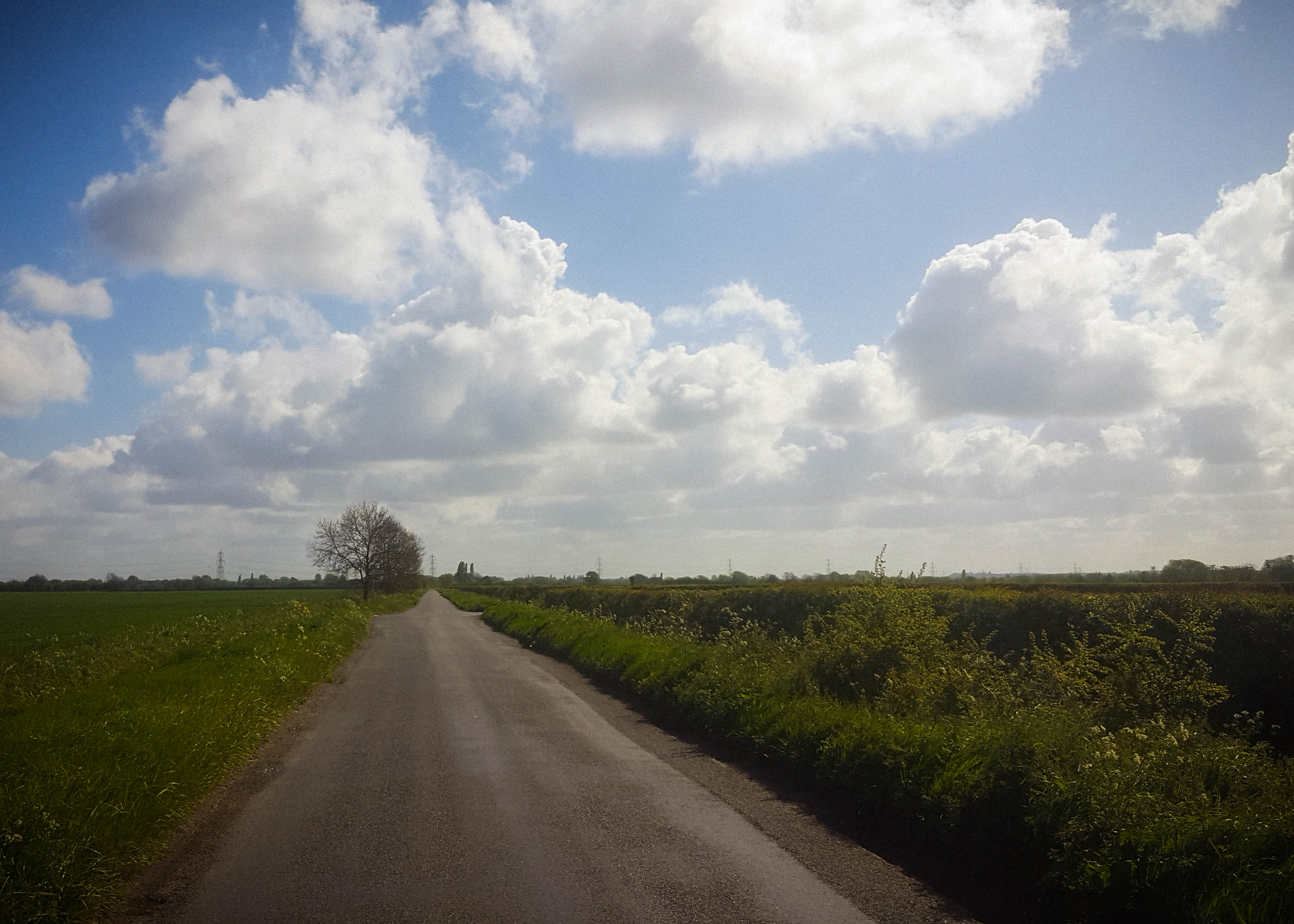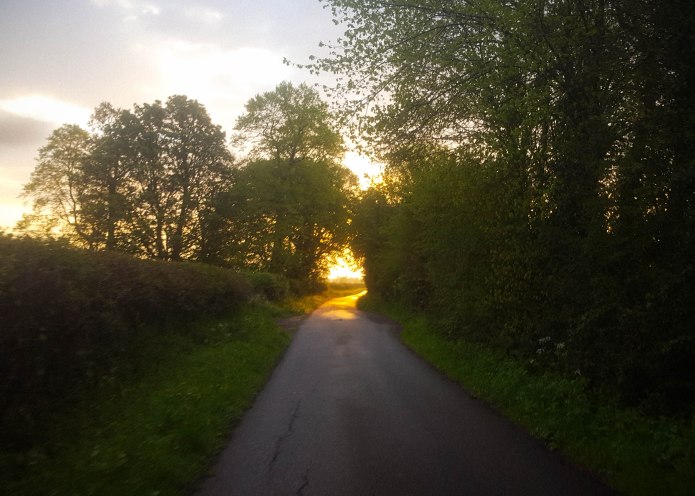 Five minutes down the road it gets dark and starts to tip it down but as quick as it starts it’s over, blue sky follows the cloud. The smell of damp woodland and bluebells hits my nostrils as steam rises from lanes heated by the sun all day until now. The rear tyres slips a little around a corner as the brake locks up on slippery tarmac. The roads tip downwards out of the hills towards the outer edge of London. Under the M25 and into the suburbs.