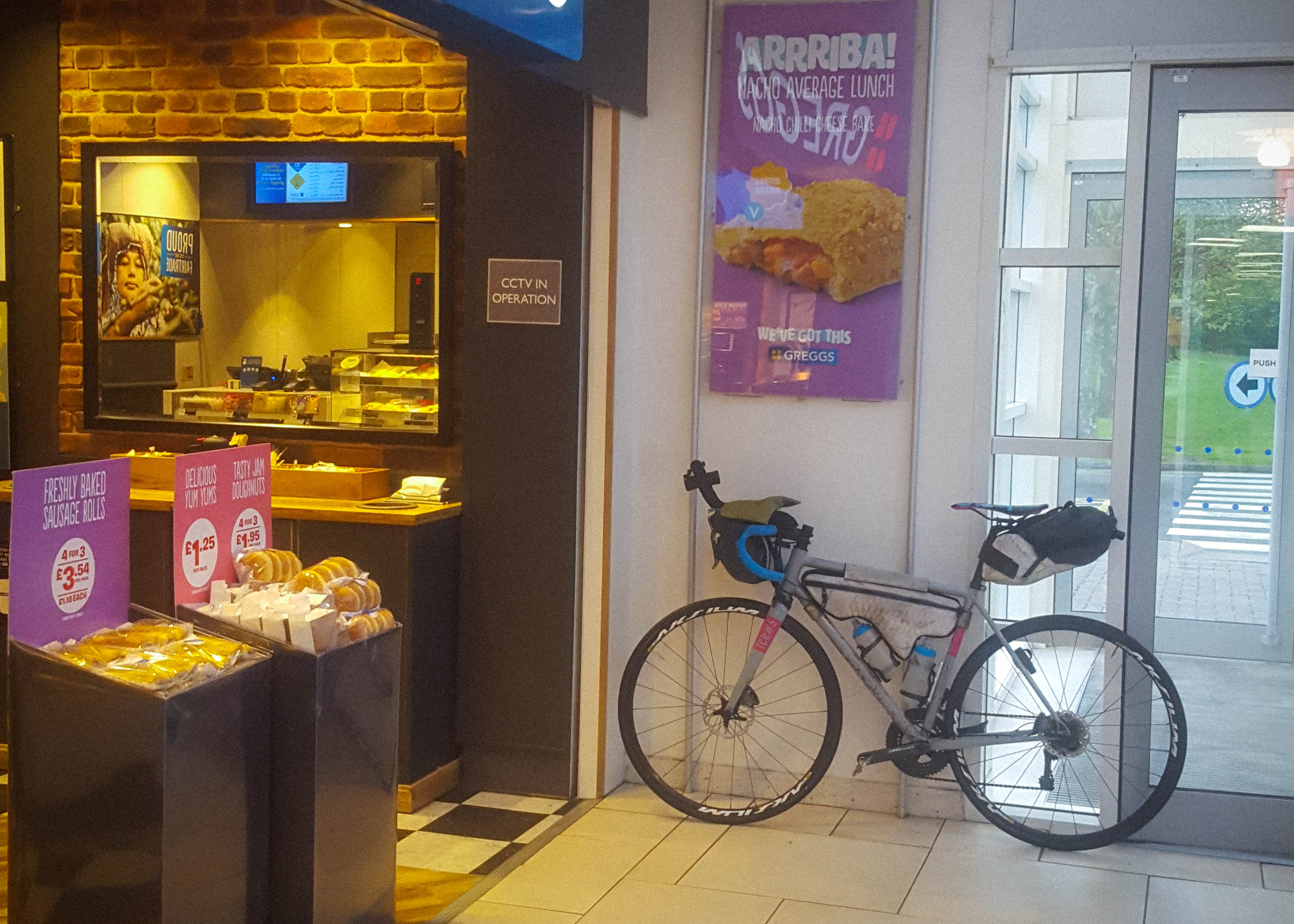 My alarm goes off at 4am. Up and out early. El, Liam, and a friend of theirs are riding the 400km Brevet Cymru today and have to be 25km up the road in Chepstow by six. Hugs and handshakes in cold rain in the dark, they head north, I head east up the hill with a Radio 4 podcast in my ears. The same roads as when I rode back from here in February but colder, darker, wetter. I make sure I don’t miss the turnings I did back in February. Sunrise over Hinton Hill and familiar roads to Leigh Delamere services for Hailsham 600 flashbacks (Chippenham Pitstop a few miles further on would be my preference but it doesn’t open for another hour and a half). A more than disappointing coffee and sausage sarnie from Gregg’s is the only option at ten past six in the morning. The usual sideways looks as people try to work out how a bike got in here from the M4. I should get back outside and carry on but it’s warm in here and I’ve got all day to get to Chalfont. I stay until I get the feeling back in my feet and the piped pop music finally gets too much. I plug my ears into an audio book and wander outside.