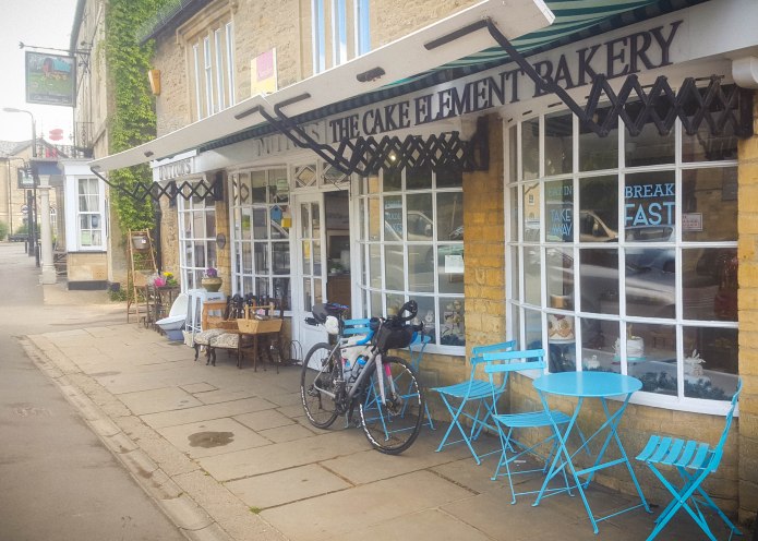 I’m generally following the Thames on its flood plains but with no protection from hills the northerly wind makes its presence felt. The sun is shining but the air is still cool. With the wind and the straight roads I’m glad I stuck the aero bars back on for a bit of practice and to see how flexible I am. I need to do more pilates (I already knew this). I pass a bakery and glance at the time. Elevenses. Brazilian Apple Tart and a fruit juice.