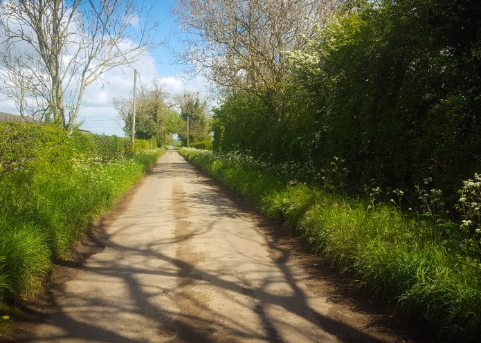 The sky is clearing as the sun climbs higher, there’s hope the temperature may rise but for now it’s still cold, all the layers stay zipped up. I’m heading into places new to me but pass signposts for places I know; Malmesbury, Royal Wootton Bassett, Swindon. I can see the Wessex Downs to my right beyond the M4 which I’m vaguely tracing eastwards. Somewhere I skim the edge of Swindon, all new housing estates and traffic calming measures plus a couple of lumpy hills. Passing a coffee shop I stop for a third breakfast of coffee and cake. It’s still only 9am and I’ve covered more than a third of the distance.