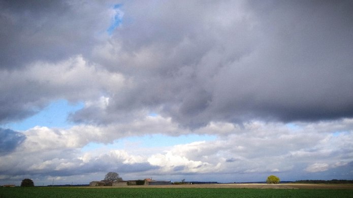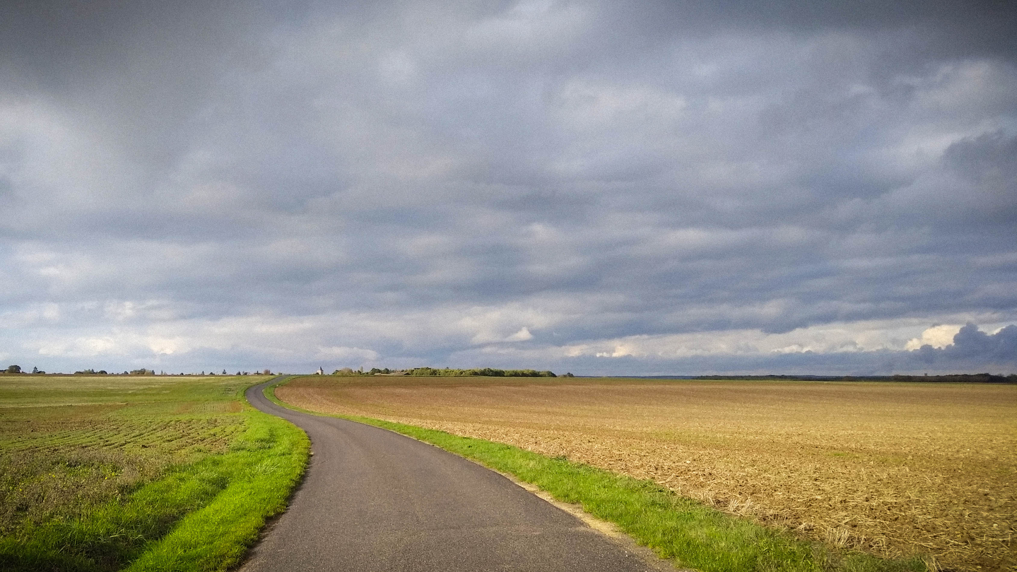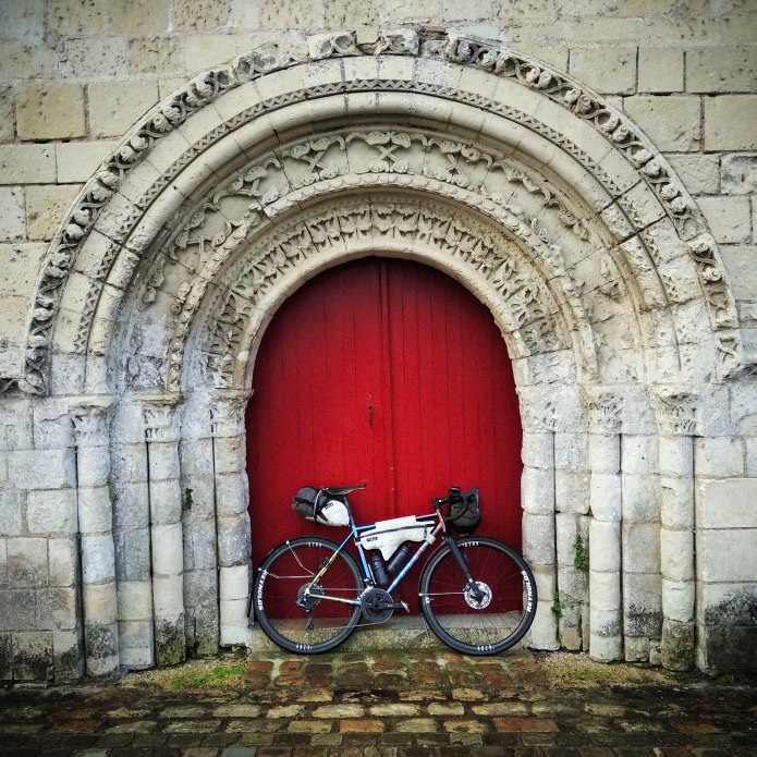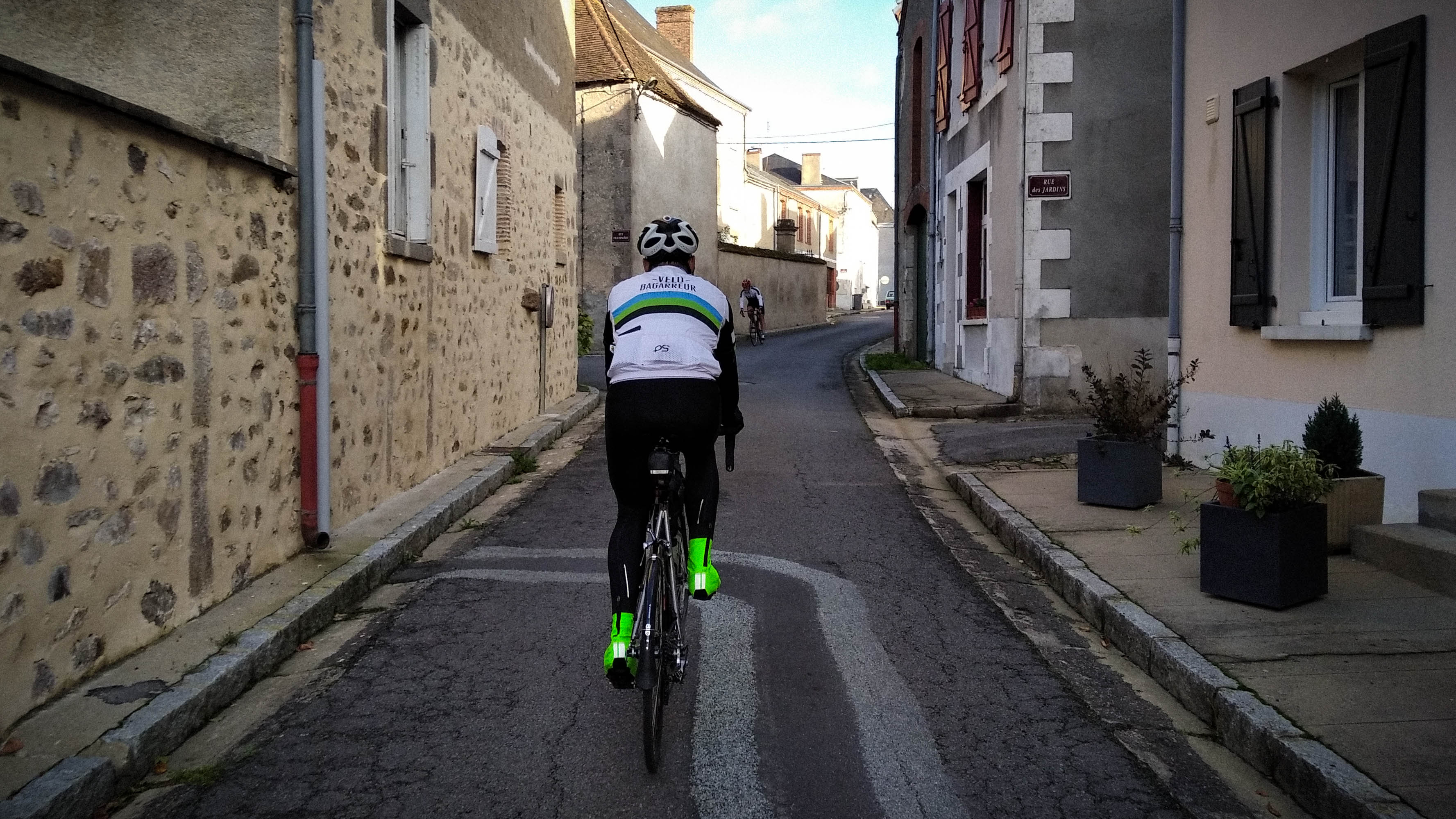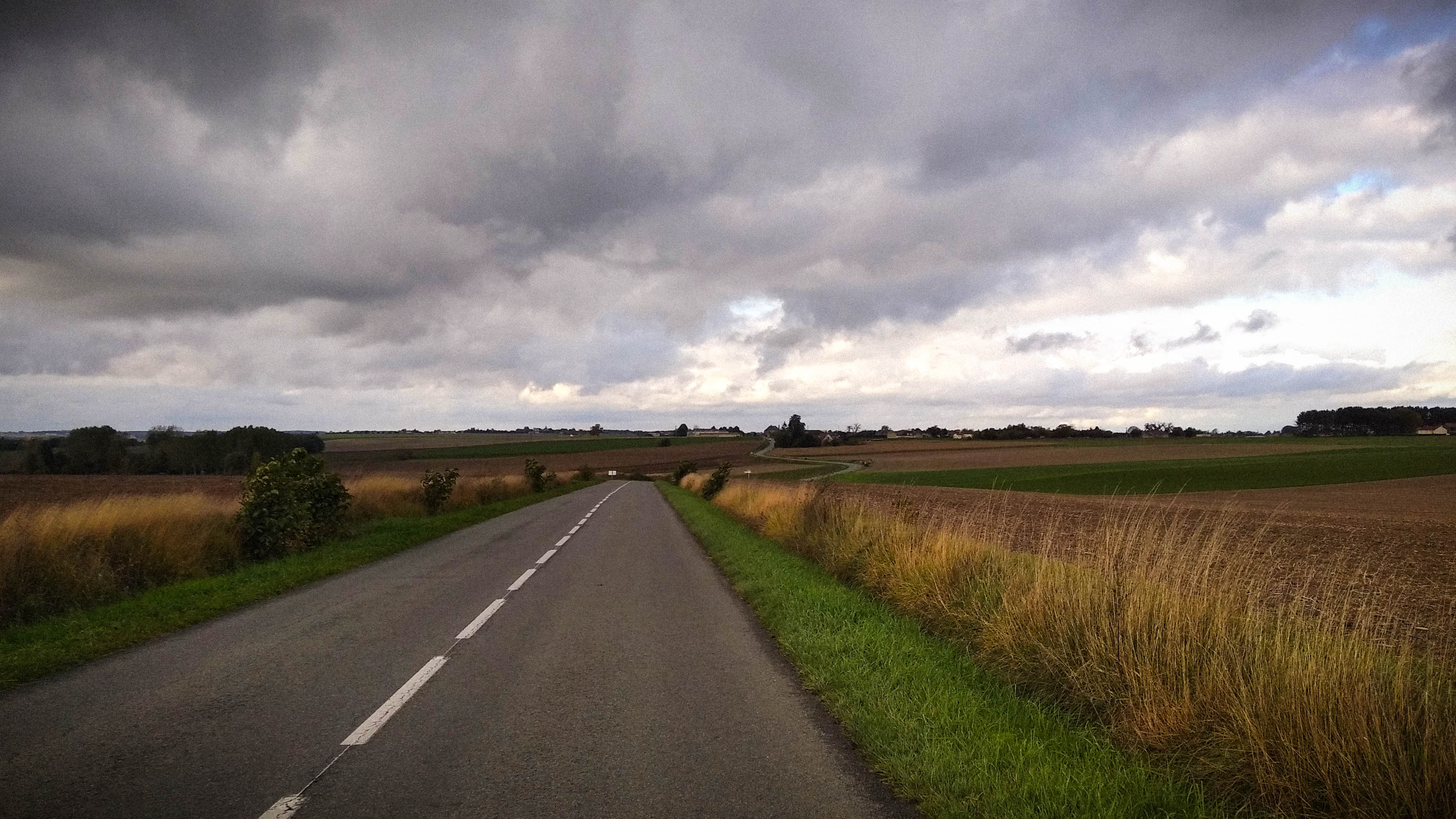 Early morning clouds scuttle across the sky at speed, I’m going to have one hell of a tailwind today. By the time I’ve kitted up there are unexpected glimpses of blue sky. Tim and I ride into Lussac-les-Eglises to meet his friend Robbie so the locals can escort me off their patch. The first 10km or so are the reverse of the route I rode south a couple of years ago when I attempted Dieppe to Lot in 48 hours. I remember this road and that roundabout and feeling exhausted thirty hours and 480km into that ride. The sky is full of fast moving banks of clouds, smudges of rain visible on the horizon. We deviate from my planned route slightly to get to Saint-Savin as it’s where Tim knows there’s definitely a cafe. It starts to drizzle as we cross the river into town. The TV on the cafe wall shows more news of flooding and landslides in the south. Two metres of rain fell in Beziers yesterday! The train line between Montpelier and Barcelona is under water and out of action for at least two weeks. Coffees drunk Tim and Robbie turn back into the wind and I find a bakery before continuing northwest.