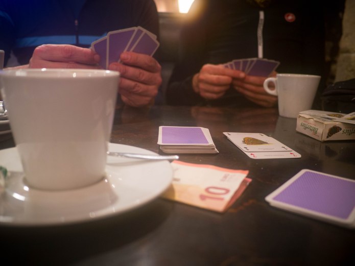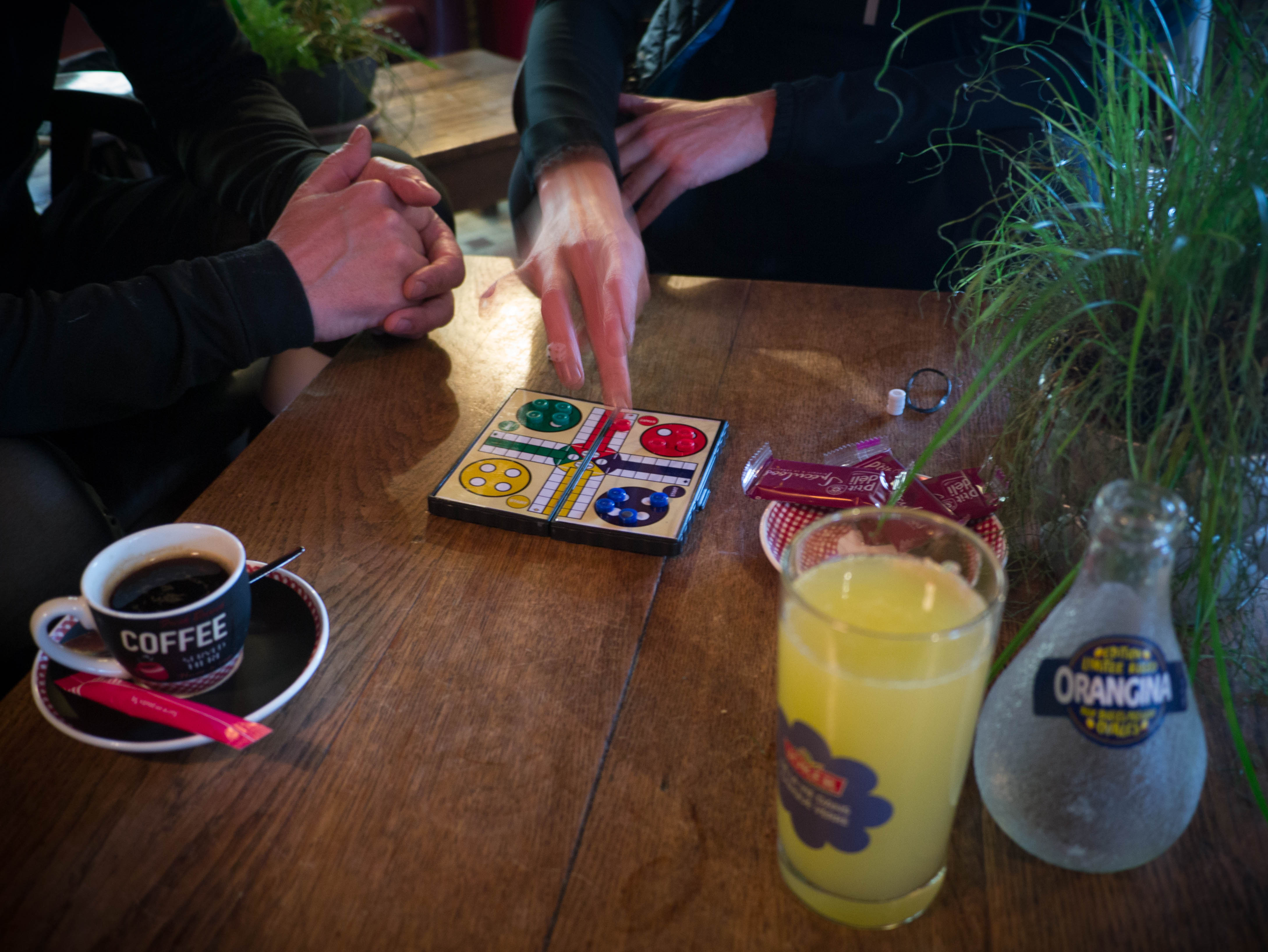 Back in Dieppe the streets that were empty this morning are now filled to overflowing with shoppers and the Saturday market. The smell of cheese and rotisserie vans. I am craving savoury food! I track down the others and we have lunch on the quayside before retiring to a cosy bar on the road back to the ferry port. Travel Ludo is retrieved from a framebag and we settle in for the rest of the afternoon.