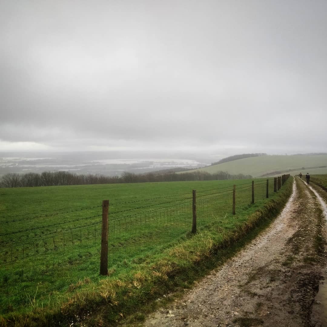 No one bats an eyelid, raises an eyebrow, or tuts when a suggestion is made to drop down from the Downs to find coffee and some tarmac, maybe even the coastal suburbs to home. A quiet consensus. The weather hasn’t entirely matched the forecast, overcast has rather been cold driving drizzle. We’ve slipped and sludged through thick sucking mud and inches deep puddles. Everything but the topography has been flattened by grey. Twenty five miles has taken more time and energy than anticipated. Water and grit has worked it’s way through clothes and into shoes. As we summit Bignor Hill the Arun flood meadows are a series of interlocking lakes. At least we can see that far from here, at Harting Down low cloud obscured and muted the views. We reach the A29 crossing and turn onto the road towards Arundel.