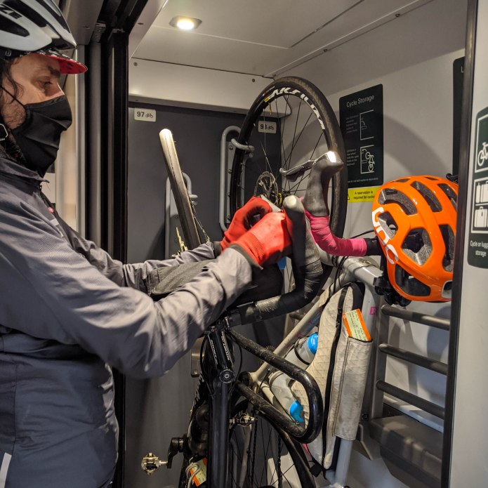 Rattle back across the cattle grids onto Greenham Common and down to the A4, taking turns on the front in a two up time trial. We get to Reading in not much over an hour. The fastest hour of the day. I find a ticket machine and George goes to find some beer. Then we discover the trains are messed up due to signalling problems and sit around waiting. We wait for quite a long while. The already an hour late train is cancelled and next one delayed. It seems no one is really sure where the train actually is or when (if) it will get here. I ask if it’s possible to use our ‘not via London’ tickets on the Paddington service. “No problem, it’s not your fault there are no trains, it’s been chaos today” says the ticket chap as he hands over bike reservations for the fast service to London in ten minutes.
