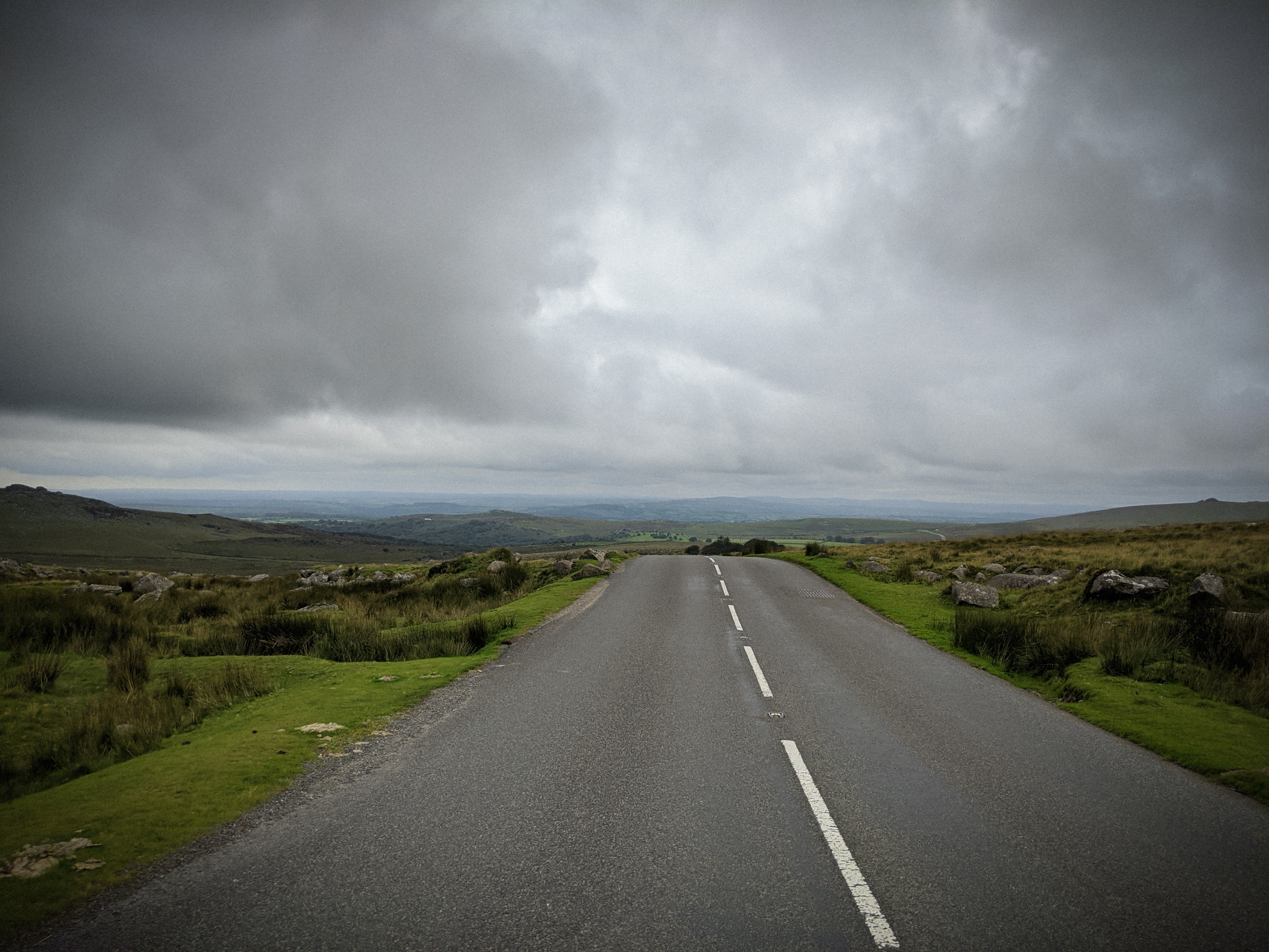 I’ve been climbing all morning, up through wooded valleys and slowly clambering onto Dartmoor, trees receding, bracken and gorse plastered across the Moor that stretches out before me. I drink half the takeaway cup of instant coffee before tipping the rest down a drain. I’ll find a café later. From a distance the hills have a red tint, as I get closer I realise it’s from the autumn bracken, more exposed here than the New Forest it’s browner and curlier. Following yesterday’s pattern the skies darken as I climb. I can see a long way south, the Devon coast looks like it’s having a sunny day. Behind me I can see yesterday’s hills, definitively blacked from this distance. I zip my jacket up and tuck low in the drops making myself as small as possible for the desolation and wind. I lose height just to gain it again. And again. Heavily laden camouflage clad soldiers march along the edge of the Moor guns slung across their fronts. Above the prison a communicatuons aerial keeps disappearing into cloud but the views to the land below are clear. I’m not sure if it’s Bodmin Moor I can see ahead or the hills I need to traverse in order to get to that next moor. A not so great pasty in Tavistock, I retrieve the spare ketchup sachet from the early Maccy D breakfast from my framebag to add some flavour.