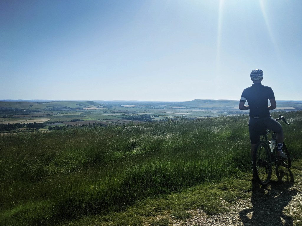 The Towner is where we are heading, continuing along the Old Coach Road in the lee of the Downs, bypassing Alfriston to Lullington Church. Later I know we’ll see Ravilious’s beautiful small woodcut of the tiny church. From the graveyard looking back the way we came is the vista from an earlier watercolour, maybe one of the first completed in Sussex. Caburn squats low on the horizon. It’s these hills and valleys and coombes between them that I explored and rediscovered during the first of the COVID lockdowns. I travelled along paths again and again and again in the footsteps of many before me, tracks worn into the chalk over centuries, in Ravilious’s words the “long white roads are a temptation, what quests they propose! They take us away to the thin air of the future or to the underworld of the past.” More often than not riding at sunrise when empty of people the hills, much like Percy Douglas Bliss’s 1933 description of his friends paintings, were “captivating in their quiet elegance, their complete absence of haste.”