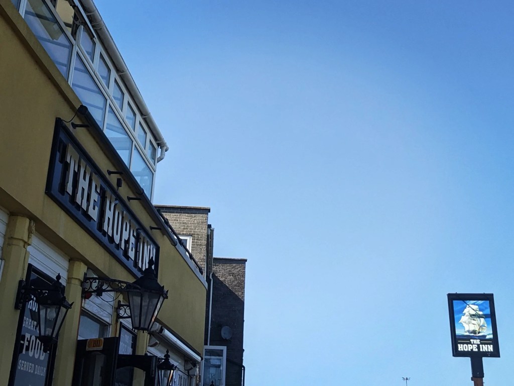 We finish our Ravilious ride with a pint and chips in Newhaven at The Hope Inn where the Ouse meets the English Channel. He stayed in rooms here with Eric Bawden when they drew and painted the harbour. Earlier we had seen two Ravilious paintings of the steam packet leaving and arriving from Dieppe. Serendipitously the current equivalent, the Transmanche ferry, leaves the harbour as we sit and drink and watch it head for France.