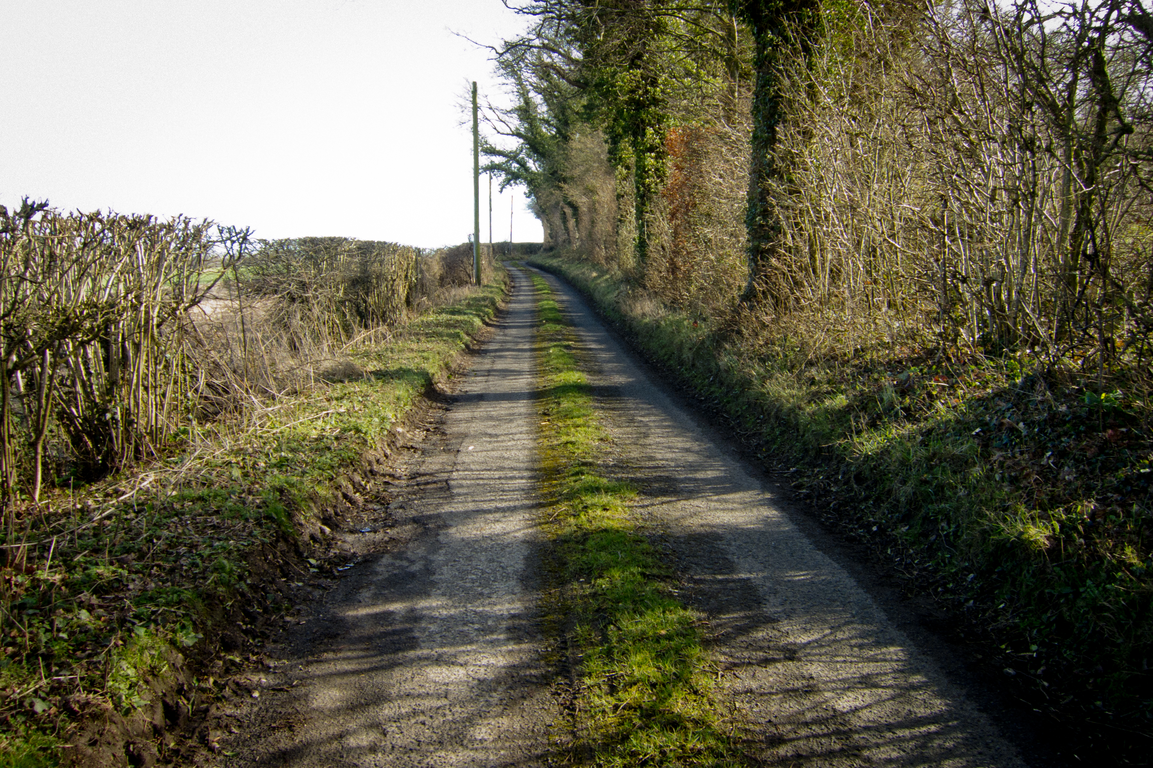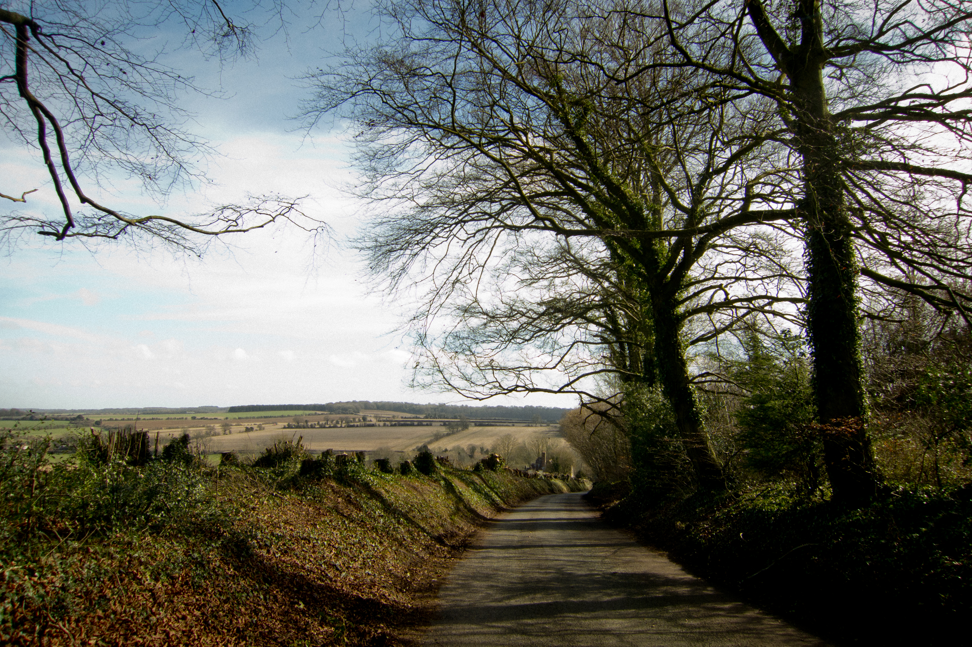 A buzzard glides across a corduroy field. Sharply shorn box edged hedges, crisp shadows. My way alternates between flowing lanes lain across the landscape and woodland holloways furrowed and hewn into the landscape. A kite hangs suspended low in the air, tailing flickering, wings adjusting, head still, watching… a rabbit dashes across the road to the hedgerow opposite. I briefly join a main road, snowdrops push through leaf litter and actual litter in the verge, fading beer cans and McDonald’s cups. Clatter over railway tracks into another town for another cash machine receipt.
