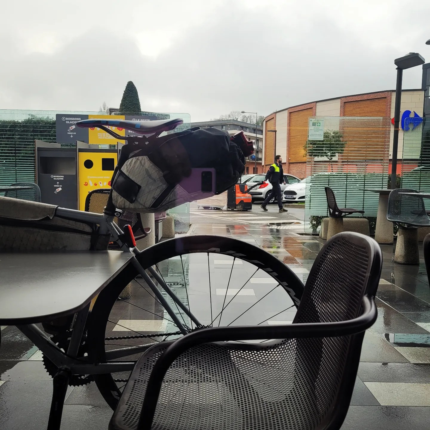 A strong tide pushed the ferry sideways up the channel last night, it docks later than usual. Through passport control a few minutes after 6am. Cinema ticket booked for 6pm. Two hundred kilometres, twelve hours. Or eleven if I want to wash and lie on a hotel bed for a bit first. Up on the plateau fuzzy red lights blink as turbine blades stir the mist. One hundred kilometres to Beauvais. Half way through the ride that will complete the first half year of Randonneur Round the Year. Maybe ride there non-stop, the scribbled midway stop in Formerie is always disappointing. Only a small bakery and I’ve never seen a café even though surely there’s a PMU bar tucked away on a back street somewhere. No dithering, five hours tops. Then ride breaks into nice chunks, easy multiples of old commutes. Beauvais to Gisors, forty kilometres, two commutes, two hours. Find snacks. Gisors to Lyons-la-Foret, thirty five kilomteres, similar timing. Find coffee. Last bit to Rouen, thirty kilometres, but two big hills. Two hours. Legs will be tired by then plus navigating the urban grot that is the outskirts of Rouen. Time for a shower and a nap before the film. Three minute stroll to cinema.