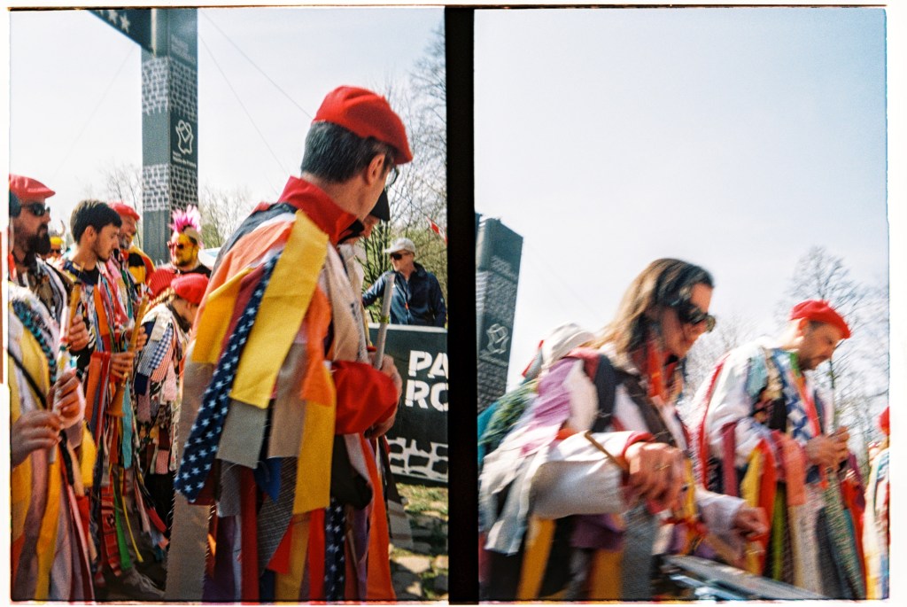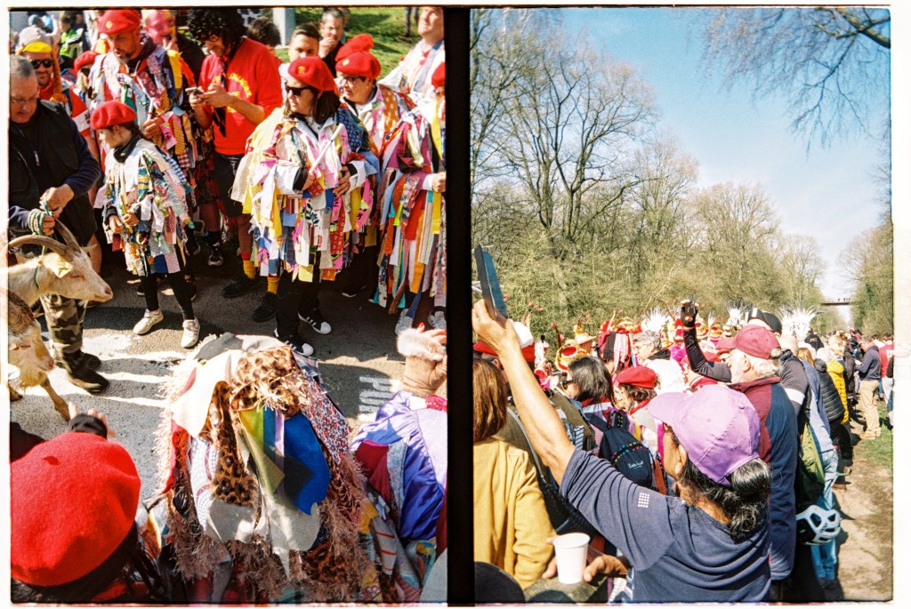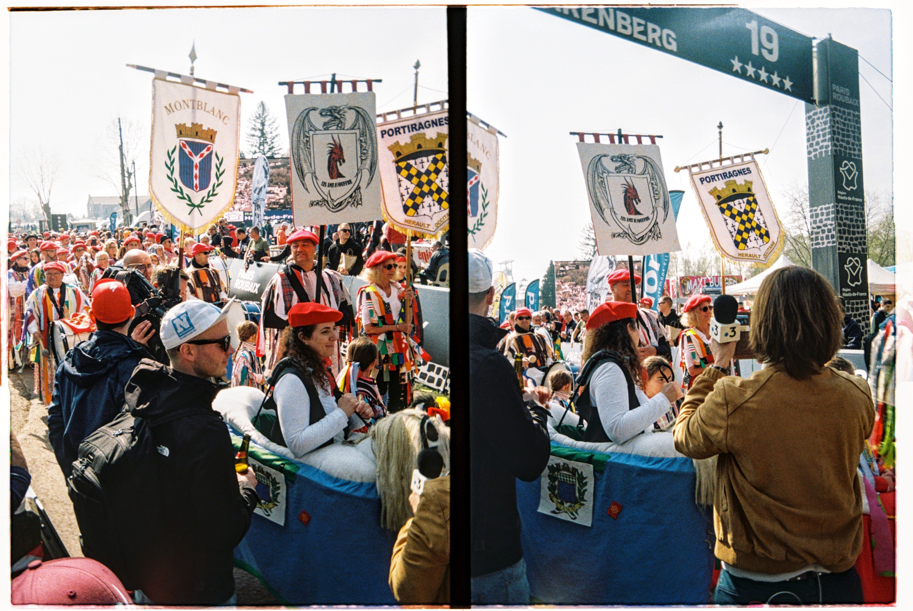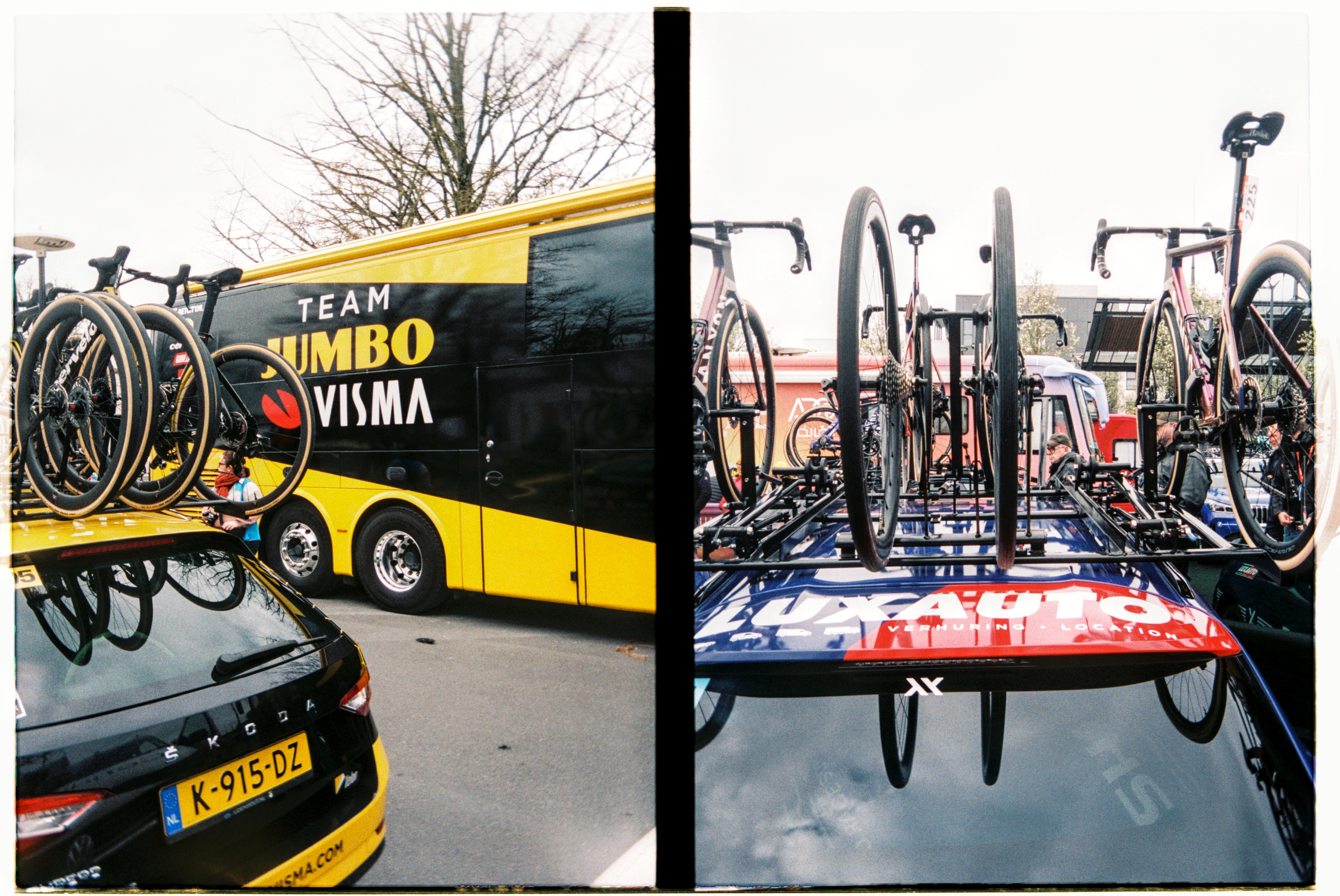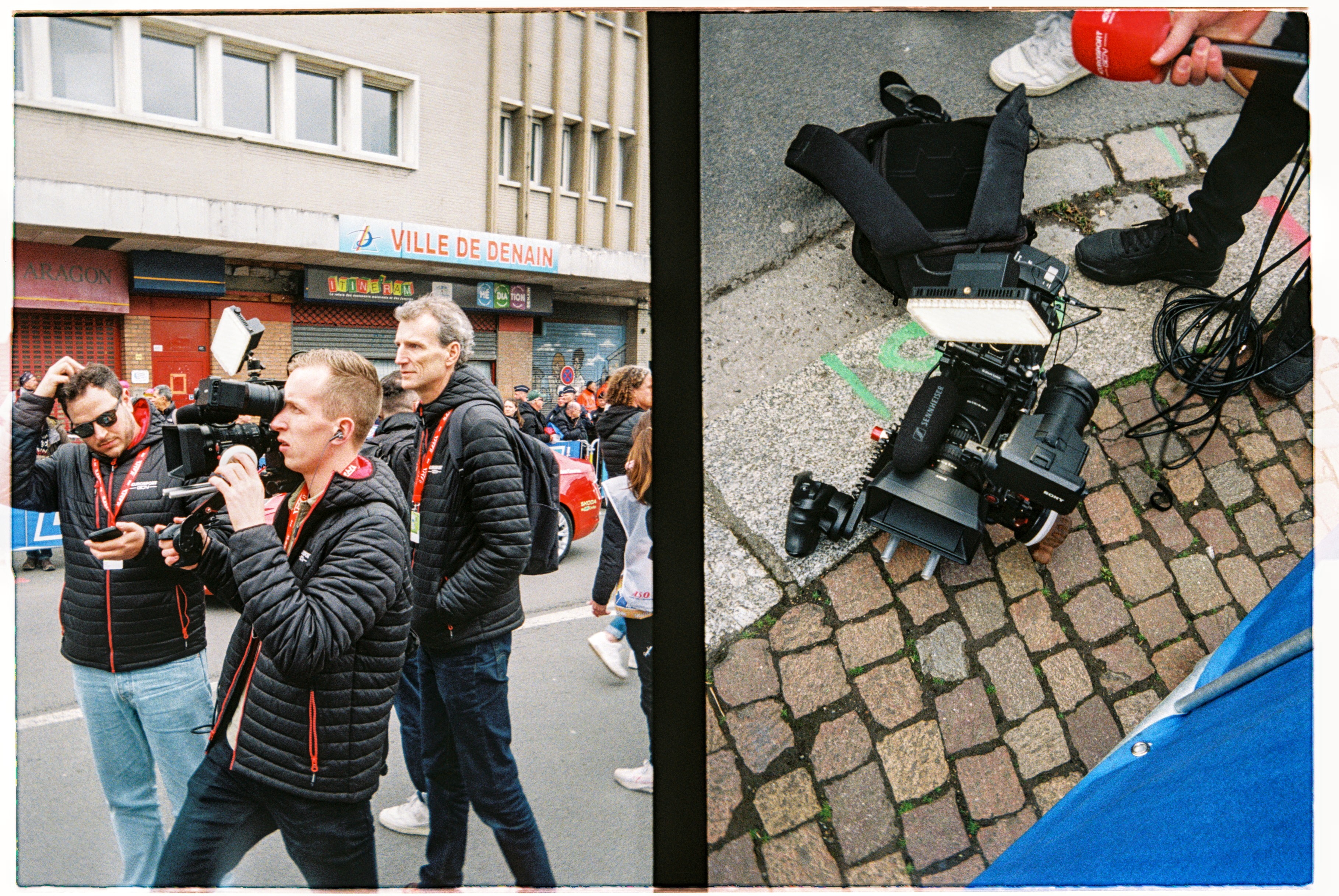 Hop off the tram next to where the shiny brightly coloured logo splattered buses are parked up. Fans milling about as mechanics fettle. Expensive carbon fibre and fancy paint jobs reflect in windscreens. Accreditation badges hang round necks, television cameras sit on shoulders, microphones clutched in hands. Lotte Kopecky chats to a television crew before taping notes to her stem. She won Flanders last weekend and a favourite for today. Point at fancy bits of kit and bump into a friend from home. Coffee on the terrace of a PMU bar in the middle of things. Flags draped over barriers and fans’ shoulders. One by one the teams are rolled out to be presented to the growing crowds. French riders get the biggest cheers. Spin to the start line, a count down… a lap of town… wait… The line of photographers opposite stop chatting, cameras raised, a wave of applause breaks on the adjacent street, a squeal of brakes, the clunk of gears… blurs of colour… wait… A second lap and they are gone. People drift away. Barriers slung onto trucks as we wander back to the tram after a quick beer in the PMU. “Home” in time for television coverage to start as they hit the first secteur. Bottles of Leffe retrieved from the fridge. Settle in for the rest of the afternoon.