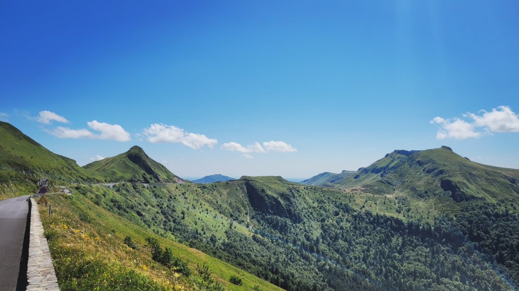 Fuzzy felt cones, perfect triangles. How I would have drawn a mountain as a kid. Ancient volcano cores, rock millions of years old. This year of rides is nothing but a blink, a flash in comparison. Sun beats, kites soar, lizards scamper. Sixteen hundred metres. Bright red Coca-cola parasols fold inside out in the wind. Coffee and coke with ice. More biscuits from the musette. Plunging off the edge of the world my brakes squeal into a steep hairpin, flinging me onto a dead straight kilometre. Freehub starts to hum, dab of brake, lean into a bend, road snakes away into cool verdant forest. The straightest line through the curves… finger hovers over a brake lever, just in case… a slight rise and pop out into the open. A thin line of tarmac etched along the edge of a long shallow glacial valley. Imaginary helicopter tracking me, solo breakaway. Nestle in the drops, tarmac tilts downwards ever so slightly as far as the eye can see. A joyous descent. A dark ridge seventy kilometres yonder. That’s my finish line, home sits 500 metres below the other side. Tuck a little lower, click down a cog, push a bit harder on the pedals.