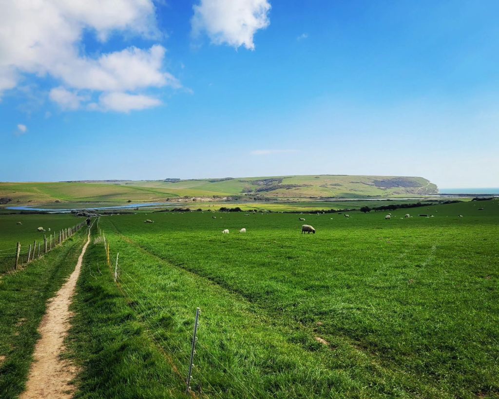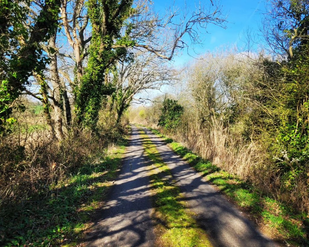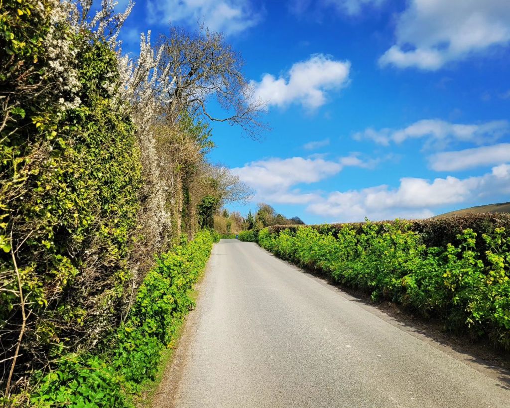 Pevensey Levels, reeds yield to the wind. Shingle scattered road by Cooden Beach huts. Turn under the railway bridge, north to Whydown Road and Straight Lane. Unfamiliar roads until I pop out in Hooe. Horsewalk back across the Levels. Herstmonceux Castle and Windmill Hill. The South Downs rise beyond the flat lands I’ll visit shortly. Rollercoaster lanes to Horam, shotgun cracks the sky. Crinkle cut shadows and hedgerow blooms. Flatlands around Ripe. Cheese sarnies and fairy cakes in a village hall, before bits of former commutes. Say hello to the Long Man as is tradition. Gravel track detour through the woods to finish.